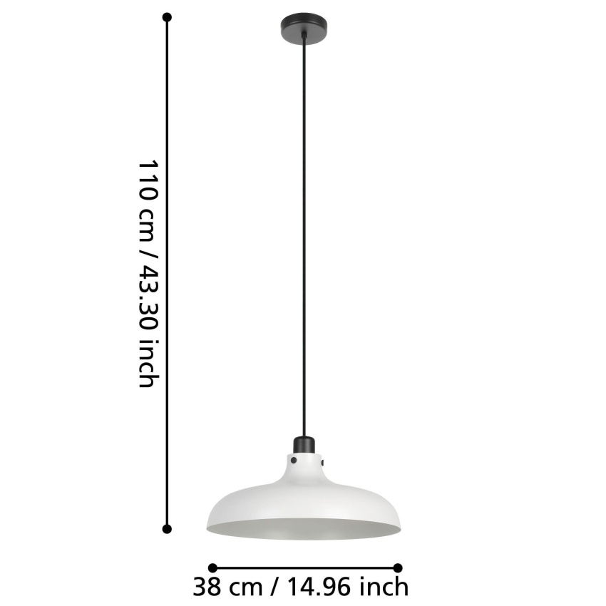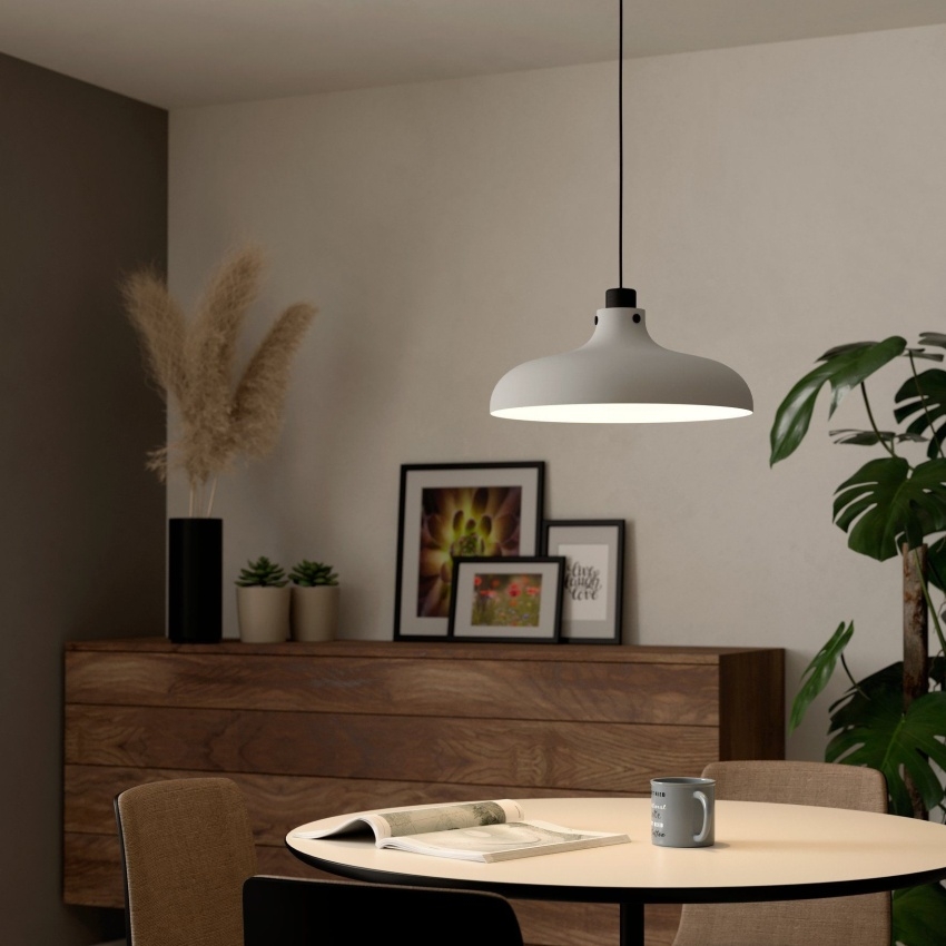 Závěsné svítidlo EGLO MATLOCK zaujme svým kónickým stínidlem v elegantní světle šedé barvě, které je doplněno černým kovovým nástavcem a jemnými černými detaily. Díky svému jednoduchému, ale výraznému designu se skvěle hodí do moderních interiérů s industriálním nádechem. Lustr je ideální nad jídelní stůl, do obývacího pokoje či kuchyně. Žárovka není součástí balení, určeno pro patici E27.
