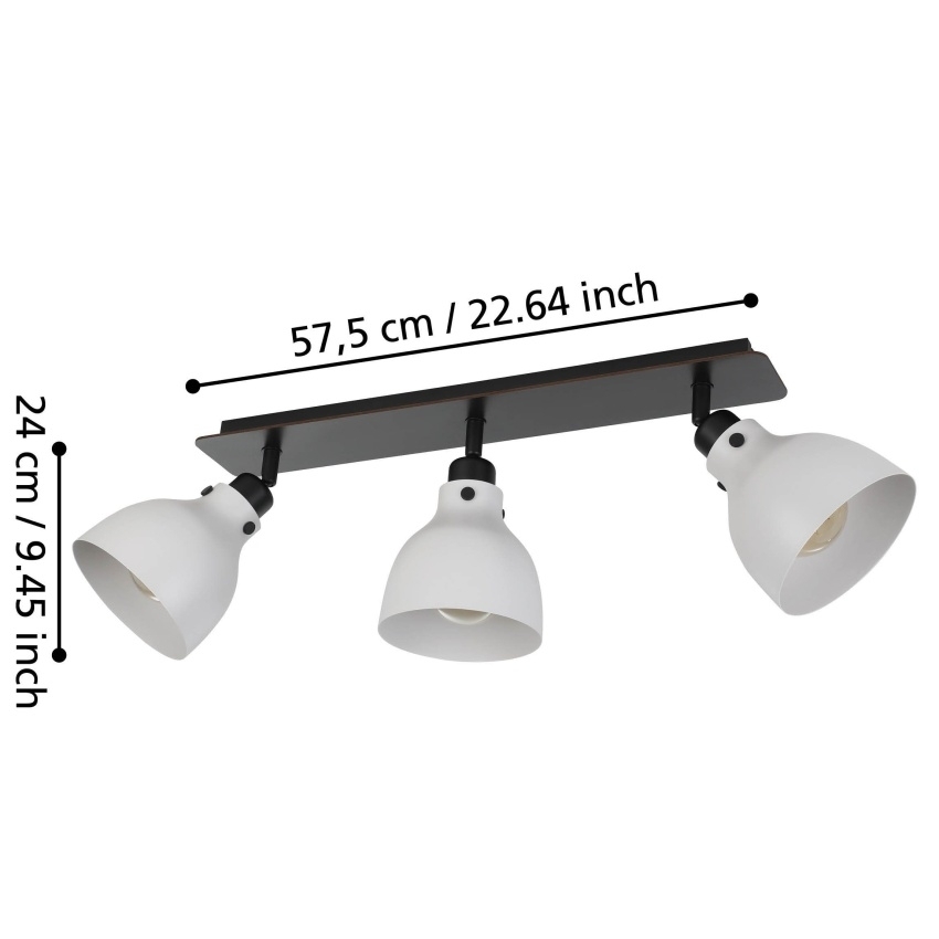 Bodové svítidlo EGLO MATLOCK je ideální volbou pro moderní interiéry. Tři kulatá, světle šedá kovová stínidla jsou upevněna na černé obdélníkové základně s jemnými detaily, které podtrhují industriální styl. Díky nastavitelným hlavám lze světlo nasměrovat přesně tam, kde je potřeba. Svítidlo je vhodné pro kuchyni, obývací pokoj, ložnici nebo chodbu. Určeno pro žárovky s paticí E27, které nejsou součástí balení.