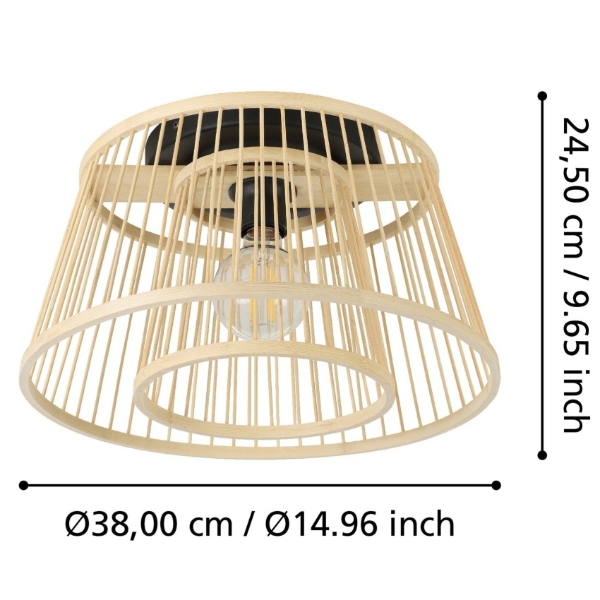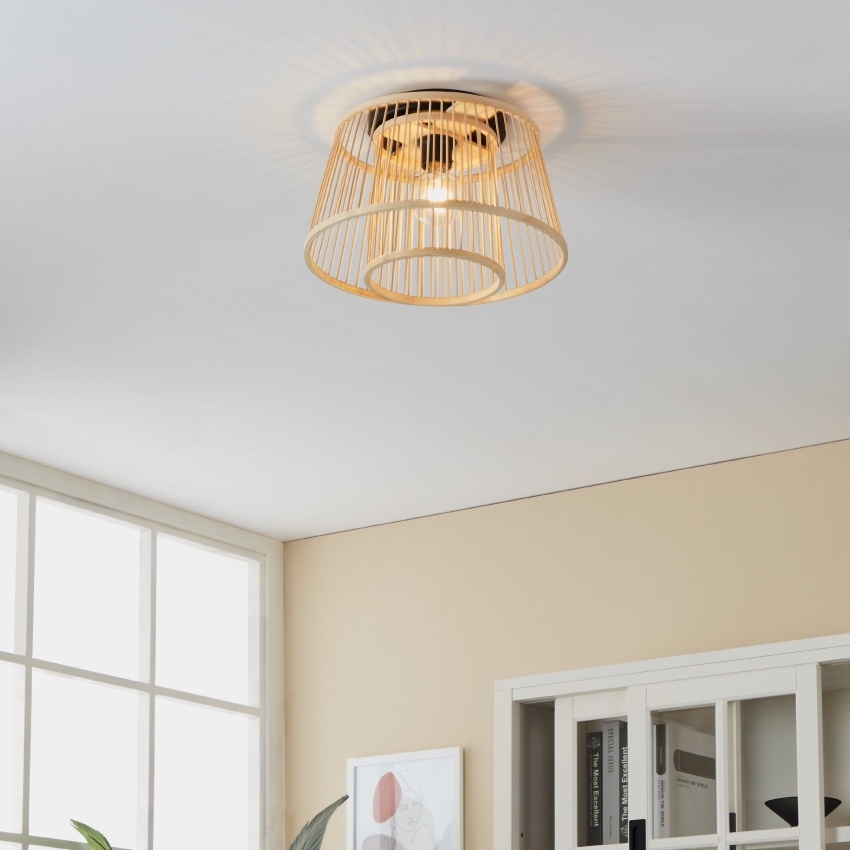 Stropní svítidlo HYKEHAM od EGLO je vyrobeno z přírodních bambusových vzpěr, které tvoří dvě do sebe zapadající stínidla, připevněná k černé stropní konzoli. Po rozsvícení vytváří na stropě působivý efekt světla a stínů, který dodá interiéru jedinečnou atmosféru. Díky použití přírodních materiálů se svítidlo dokonale hodí do boho stylu či přírodně laděných interiérů. Ideální pro osvětlení obývacího pokoje, jídelny, ložnice nebo chodby. Svítidlo je kompatibilní s žárovkami s paticí E27, přičemž světelný zdroj není součástí balení.