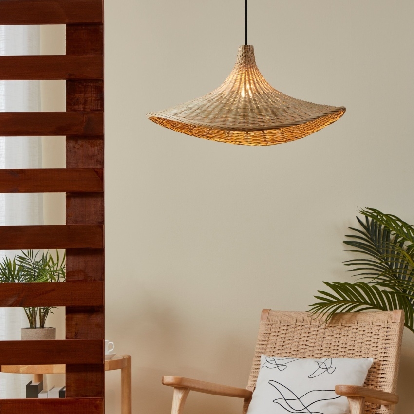 Závěsné svítidlo HAXEY od EGLO kombinuje přírodní bambusové proutí se stylovým černým kovovým prvkem. Zakřivené stínidlo z lehkého bambusu vytváří po rozsvícení příjemnou atmosféru a zajímavé světelné efekty. Svítidlo je zavěšeno na černém textilním lanku, které je připevněno ke kovovému vrchlíku v černém provedení. Díky svému přírodnímu designu se hodí do moderních interiérů v boho či skandinávském stylu. Ideální pro osvětlení jídelny, obývacího pokoje nebo kuchyně. Žárovka není součástí balení, svítidlo je kompatibilní se všemi typy žárovek s paticí E27.