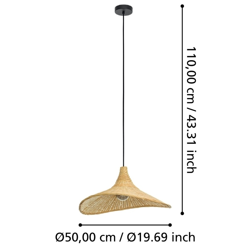 Závěsné svítidlo EGLO HAXEY 43869, E27, černá/přírodní bambus