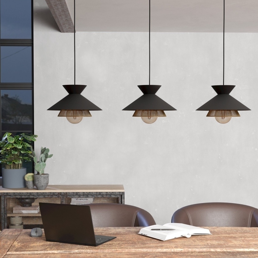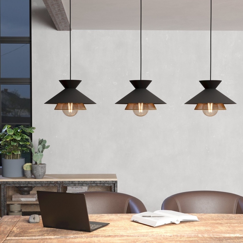Závěsné svítidlo EGLO GRIZEDALE 43886, 3×E27, černá/mosaz