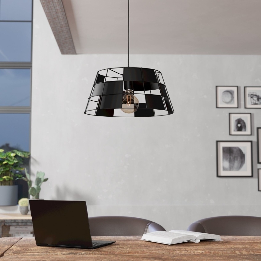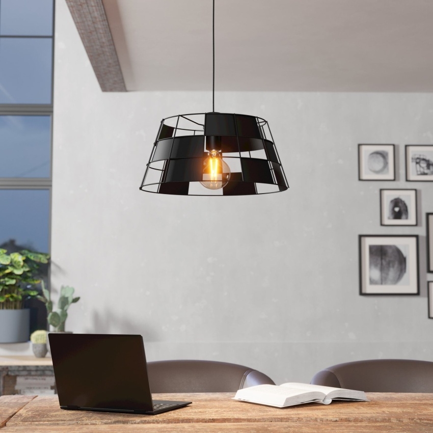 Závěsné svítidlo PONTEFRACT od EGLO přináší moderní industriální design, který zaujme svou jednoduchostí a elegancí. Kulaté kovové stínidlo v černém provedení je tvořeno čtvercovými otvory, jež vytvářejí stylový kostkovaný vzor. Po rozsvícení vzniká na stěnách a stropě jedinečná hra světla a stínů, která dodá interiéru výjimečnou atmosféru. Stínidlo je zavěšeno na černém textilním lanku a upevněno k černému kovovému vrchlíku. Svítidlo je ideální nad jídelní stůl, do obývacího pokoje, ložnice či kuchyně. Žárovka není součástí balení a je možné použít jakýkoliv typ s paticí E27.