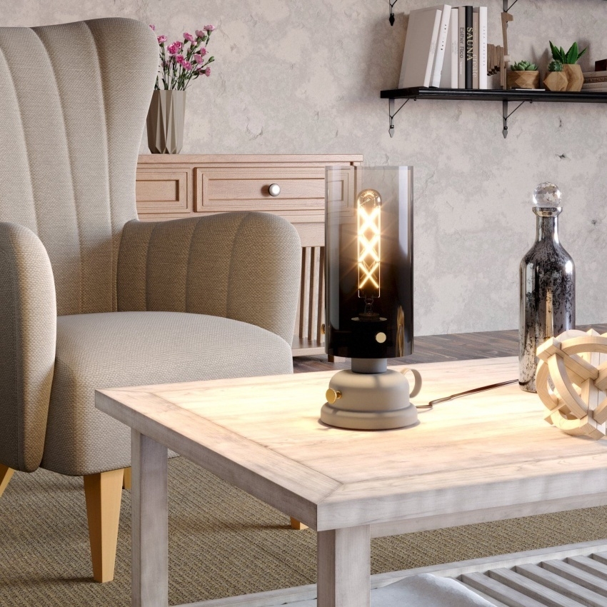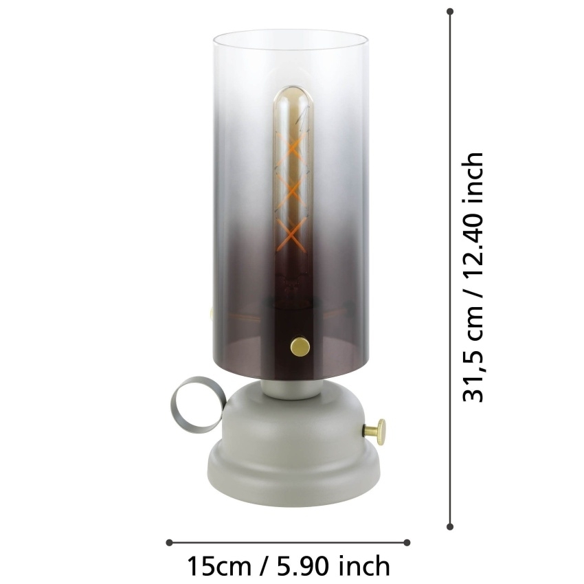Stolní lampa GARGRAVE 43929 přináší elegantní spojení moderního designu a klasických prvků. Úzký válec z kouřového skla (fumé) vytváří příjemné tlumené světlo, které dodá každé místnosti útulnou atmosféru. Stabilní šedý podstavec s mosaznými detaily je inspirován tradičními olejovými lampami. Díky praktickému otočnému spínači na podstavci je ovládání lampy snadné a pohodlné. Svítidlo je určeno pro jednu žárovku s paticí E27 a maximálním výkonem 40 W, která není součástí balení, takže si můžete vybrat světelný zdroj podle svých preferencí.