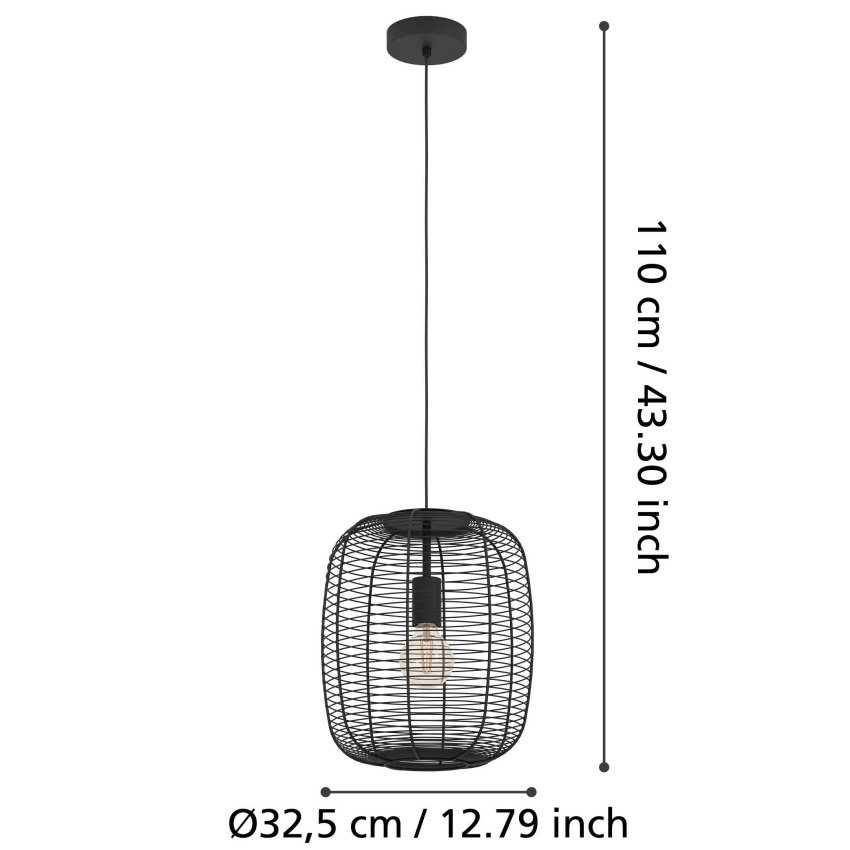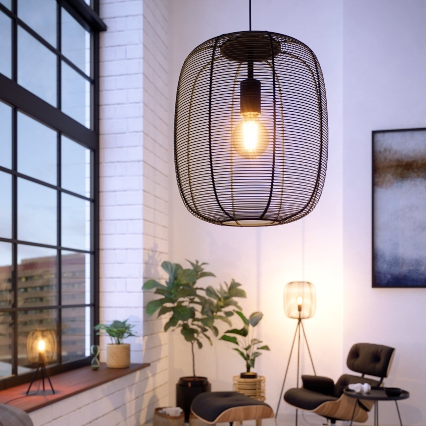Závěsné svítidlo RINROE 43965 zaujme svým originálním designem a výrazným světelným efektem. Válcové stínidlo je vyrobeno z černého vinutého drátu, který po rozsvícení vytváří jedinečné hry světla a stínu. Díky svému stylovému vzhledu se perfektně hodí do moderních i vintage interiérů, ať už jako osvětlení jídelního stolu, obývacího pokoje či jiného prostoru. Svítidlo je určeno pro žárovku s paticí E27 a maximálním výkonem 40 W, která není součástí balení, což vám umožňuje zvolit světelný zdroj podle vašich potřeb.