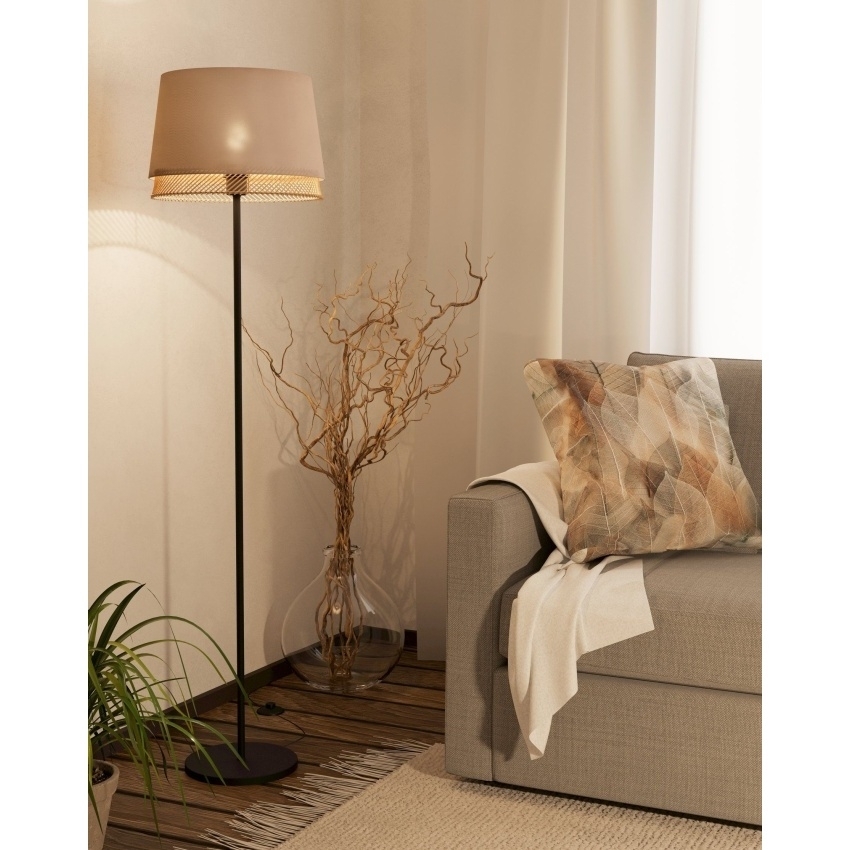 Stojací svítidlo EGLO TABLEY 43978 s kombinací lněného a bambusového stínidla, ideální pro vytvoření útulného a přírodního stylu interiéru.