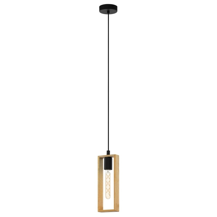 Závěsné svítidlo EGLO LITTLETON 44051 s kombinací černého kovu a hnědého dřeva, ideální pro moderní i industriální interiéry.