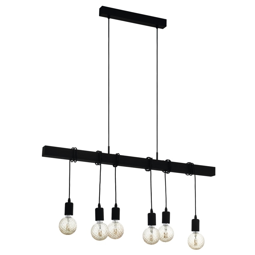 Závěsné svítidlo EGLO TOWNSHEND 44062 s šesti paticemi E27 a stylovou kombinací černého kovu a dřeva, ideální pro moderní i industriální interiéry.