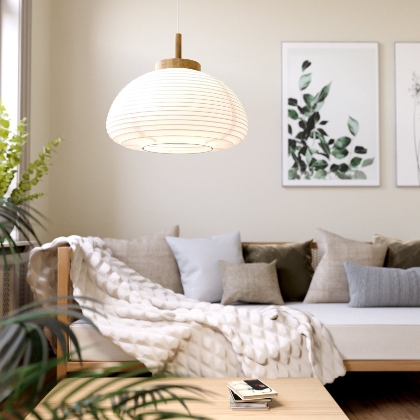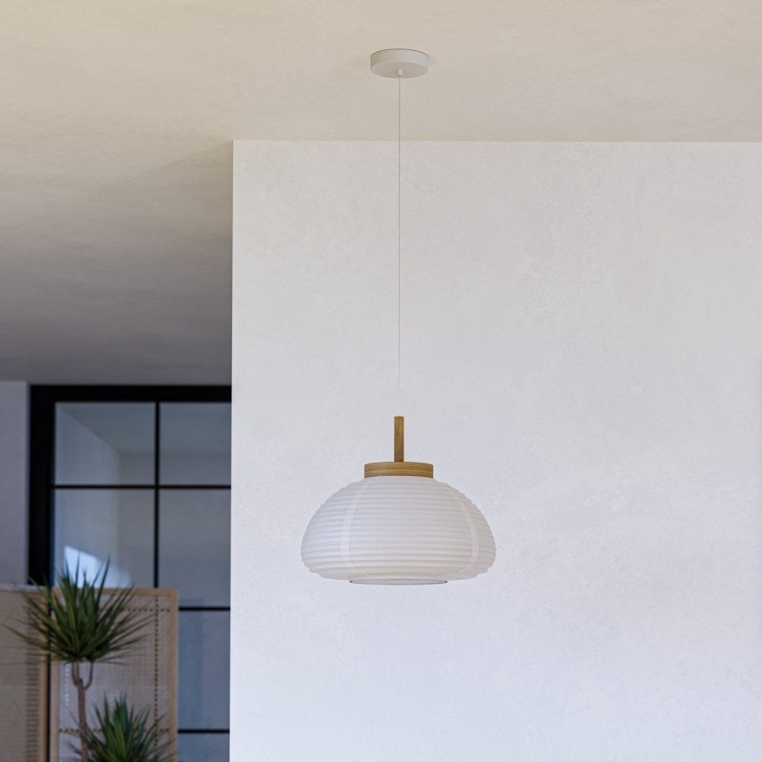 Závěsné svítidlo SUMMERHILL 44065 přináší elegantní spojení japonského minimalismu a skandinávské jednoduchosti v oblíbeném Japandi stylu. Kulaté stínidlo z bílého rýžového papíru působí lehce a vzdušně, zatímco dřevěný prvek z FSC certifikovaného gumovníku přidává přírodní akcent. Svítidlo je vhodné pro obývací pokoj, ložnici, jídelnu nebo chodbu, kde vytvoří útulnou a klidnou atmosféru. Je určeno pro jednu žárovku s paticí E27 a maximálním výkonem 40 W, která není součástí balení, což vám dává možnost zvolit světelný zdroj podle vlastních potřeb.