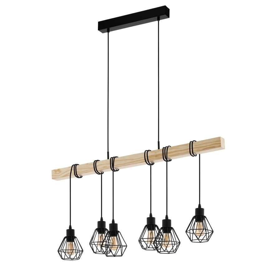 Závěsné svítidlo EGLO TOWNSHEND 5 44076 v industriálním stylu s kombinací černého kovu a přírodního dřeva, ideální pro větší prostory a výrazné osvětlení.