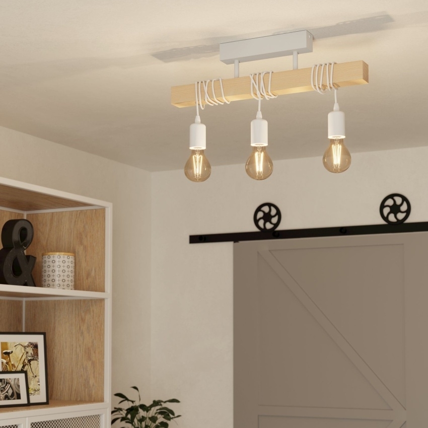 Stropní svítidlo TOWNSHEND 44082 přináší stylový a minimalistický design, který propojuje bílou ocel s FSC certifikovaným dřevem borovice. Díky třem paticím E27 poskytuje dostatek světla pro osvětlení kuchyně, obývacího pokoje, ložnice či chodby. Otevřená konstrukce svítidla umožňuje využít dekorativní žárovky, které dodají interiéru osobitý charakter. Žárovky nejsou součástí balení, což vám dává možnost vybrat si světelný zdroj dle vlastních preferencí. Toto svítidlo je ideálním řešením pro moderní interiéry, kde se snoubí praktičnost s elegantním designem.
