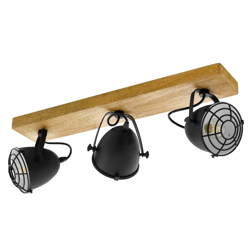 Bodové stropní svítidlo EGLO GATEBECK 44093 s kombinací přírodního dřeva a černé oceli, ideální pro moderní interiéry v industriálním stylu.