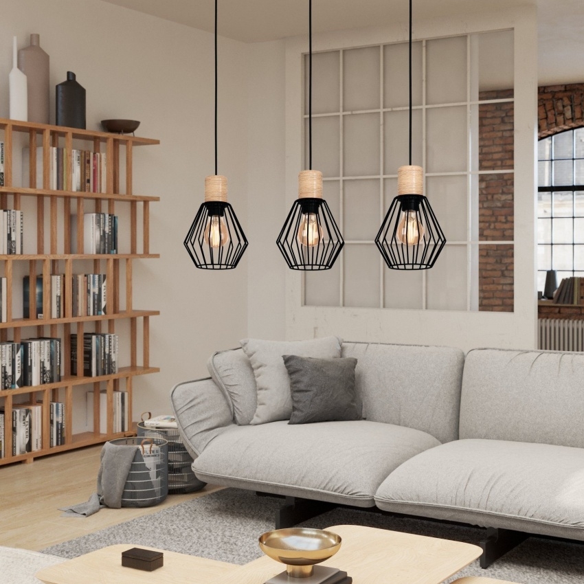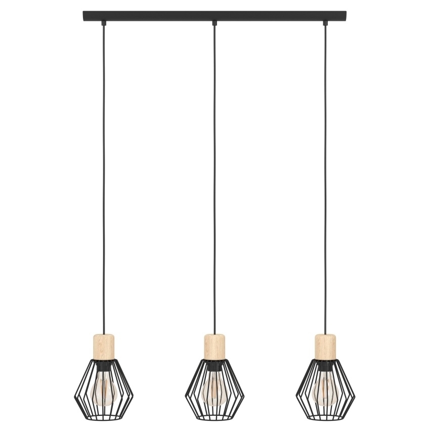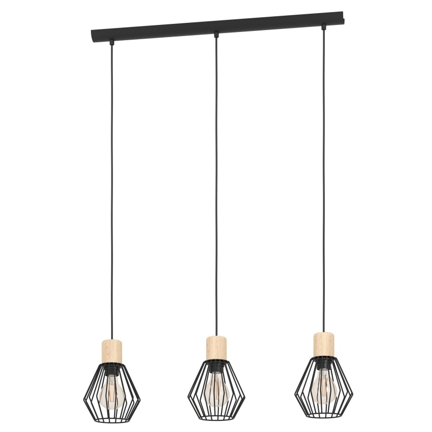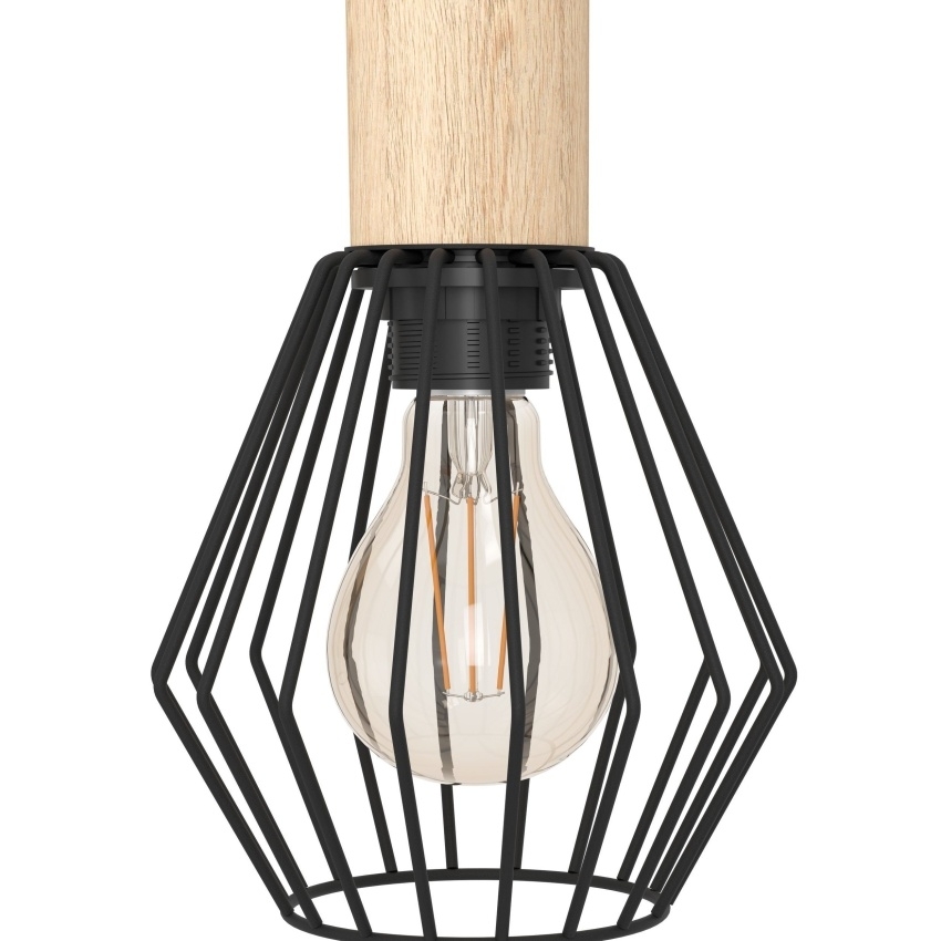 Závěsné svítidlo EGLO PALMORLA 44094 v elegantním industriálním stylu, který kombinuje černý kov a přírodní dřevo, ideální pro moderní interiéry.