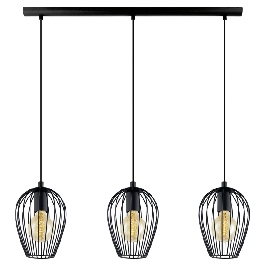 Závěsné svítidlo NEWTOWN obsahuje tři oválná černá drátěná stínidla zavěšená na černém kovovém krytu. Drátěná stínidla vytvářejí fascinující hru světla a stínu, jakmile se rozsvítí světlo. Závěsné svítidlo hladce zapadne do moderních interiérů a vytvoří dokonalé osvětlení v každém prostoru, ať už v obývacím pokoji nebo jídelně nad stolem. Vyobrazené žárovky s vláknem nejsou součástí dodávky. Výrobek má objímky žárovek E27 a vyžaduje žárovky E27.