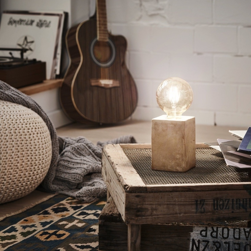 Stolní svítidlo EGLO PRESTWICK 49812 v moderním industriálním stylu s betonovým vzhledem.