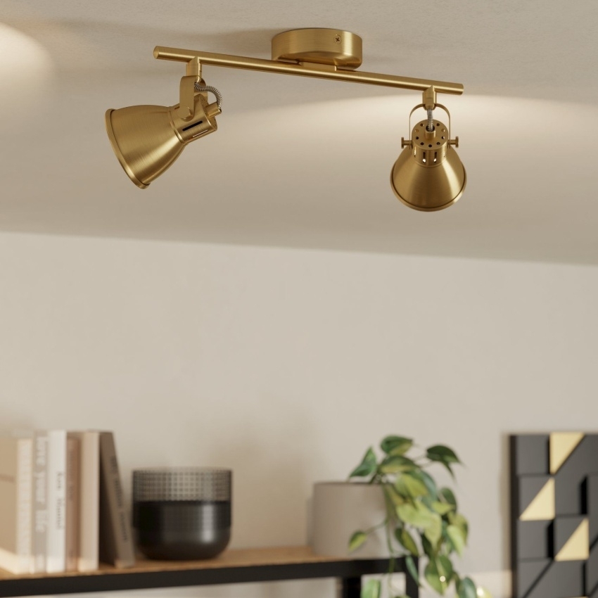 Stropní bodové svítidlo EGLO SERAS 900171 nabízí moderní a elegantní vzhled v broušené mosazi se zlatým vnitřkem. Dvě pohyblivé hlavy umožňují nasměrování světla přesně tam, kde je potřeba. Ideální je pro osvětlení kuchyně, obývacího pokoje, ložnice nebo chodby. Součástí balení jsou dvě LED žárovky GU10, které poskytují teplé bílé světlo a úsporný provoz.