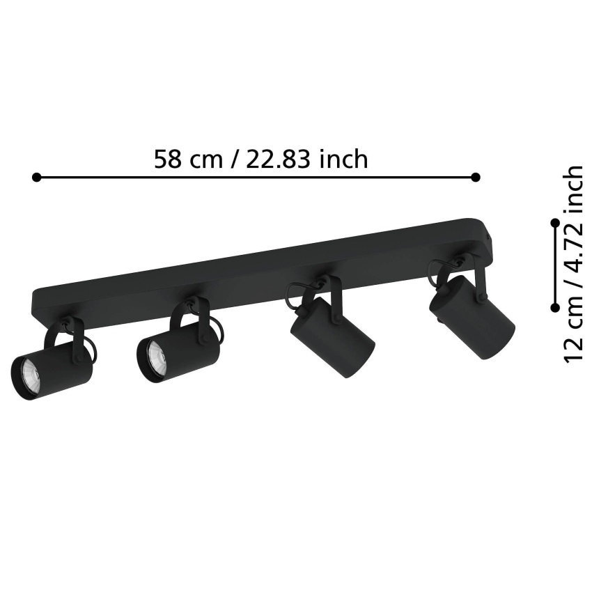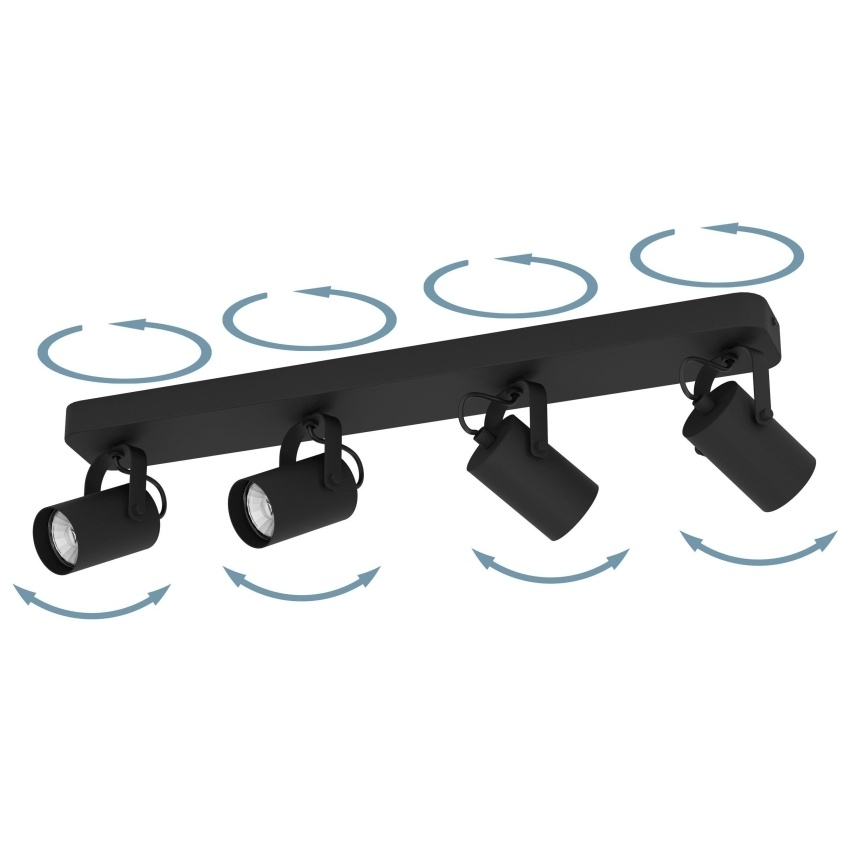 Stropní LED svítidlo SOREGO je vyrobeno z kvalitního černého kovu a disponuje čtyřmi pohyblivými hlavami, které umožňují nasměrování světla přesně tam, kam potřebujete. Díky minimalistickému monochromatickému designu se snadno začlení do moderních interiérů. Součástí balení jsou LED žárovky GU10, které poskytují příjemné teplé bílé světlo, ideální pro obývací pokoj, kuchyni, ložnici či chodbu.
