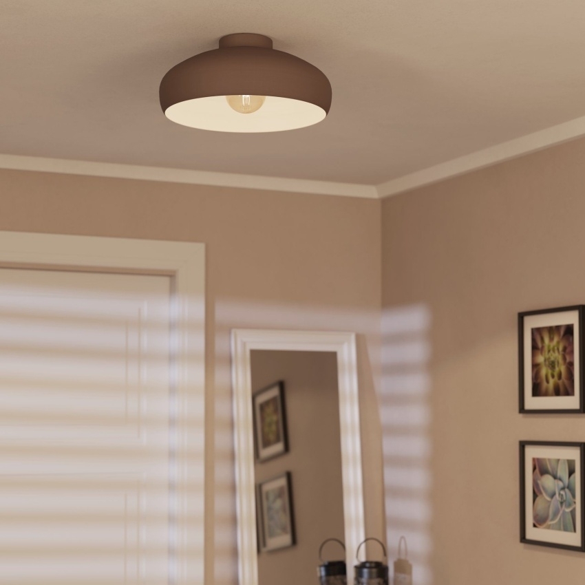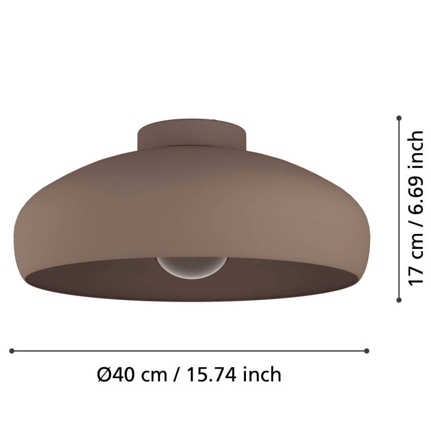 Stropní svítidlo MOGANO je vyrobeno z kvalitního kovu a má kulaté stínidlo v elegantní barvě moka. Vnitřní část stínidla je ve stejné barvě, což vytváří harmonický monochromatický vzhled. Díky svému jednoduchému a modernímu designu se hodí do různých interiérů, jako je kuchyně, obývací pokoj, ložnice nebo chodba. Svítidlo poskytuje příjemné a funkční osvětlení, které podtrhne styl vašeho domova. Žárovka není součástí balení, doporučuje se použít jakoukoli žárovku s paticí E27.