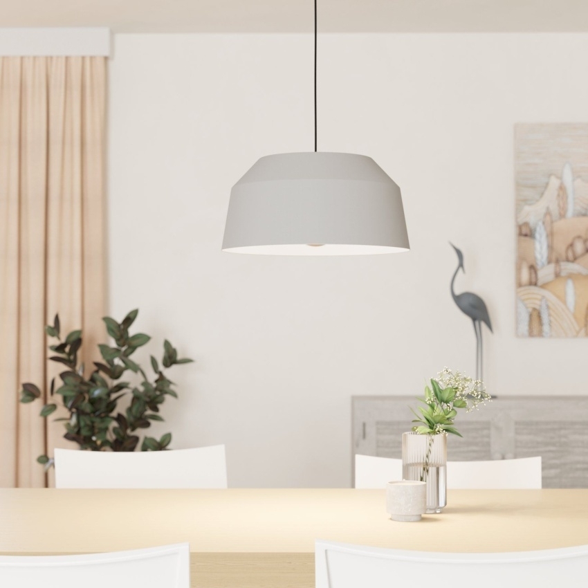 Závěsné svítidlo CONTRISA je vyrobeno z kovu a tvoří jej kulaté stínidlo v elegantní šedé barvě o průměru 38 cm. Stínidlo je zavěšeno na kovovém vrchlíku stejné barvy a kvalitním černém textilním kabelu, který dodává svítidlu moderní vzhled. Ozdobné otvory nad stínidlem vytvářejí jemné světelné efekty směrem ke stropu. Díky jednoduchému designu v duchu stylu New Nordic se svítidlo skvěle hodí do obývacího pokoje, jídelny či dalších moderních interiérů. Žárovka není součástí balení, doporučuje se použít jakákoli žárovka s paticí E27.