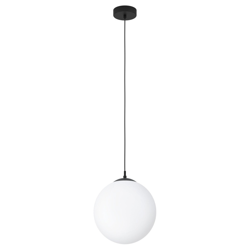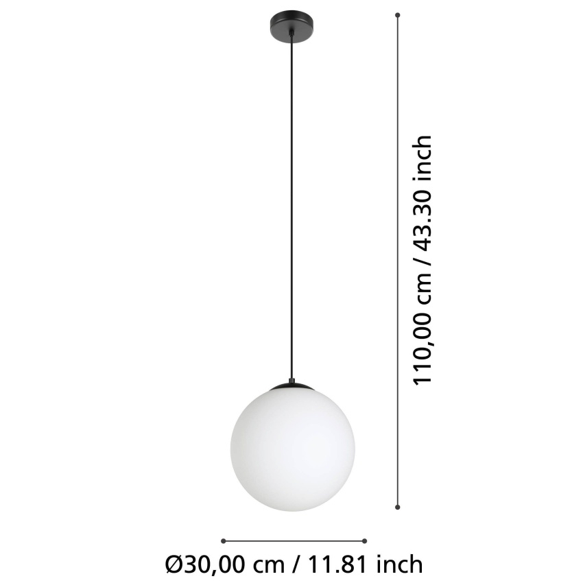 Závěsné svítidlo RONDO 3 spojuje minimalistický design a funkčnost. Bílé, opálově matné skleněné stínidlo ve tvaru koule je zavěšeno na kulatém černém kovovém vrchlíku, což vytváří elegantní a čistý vzhled. Svítidlo se perfektně hodí nad jídelní stůl, do obývacího pokoje nebo jiné moderní interiéry. Díky patici E27 si můžete zvolit žárovku podle svých potřeb. Žárovka není součástí balení.