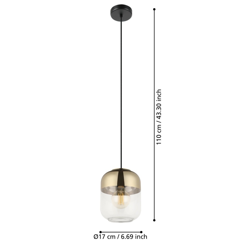 Elegantní závěsné svítidlo EGLO MARYVILLA s kombinací čirého kostkovaného a zlatého skla, vhodné pro žárovku E27.