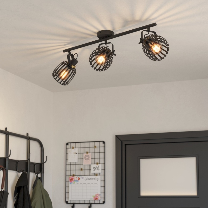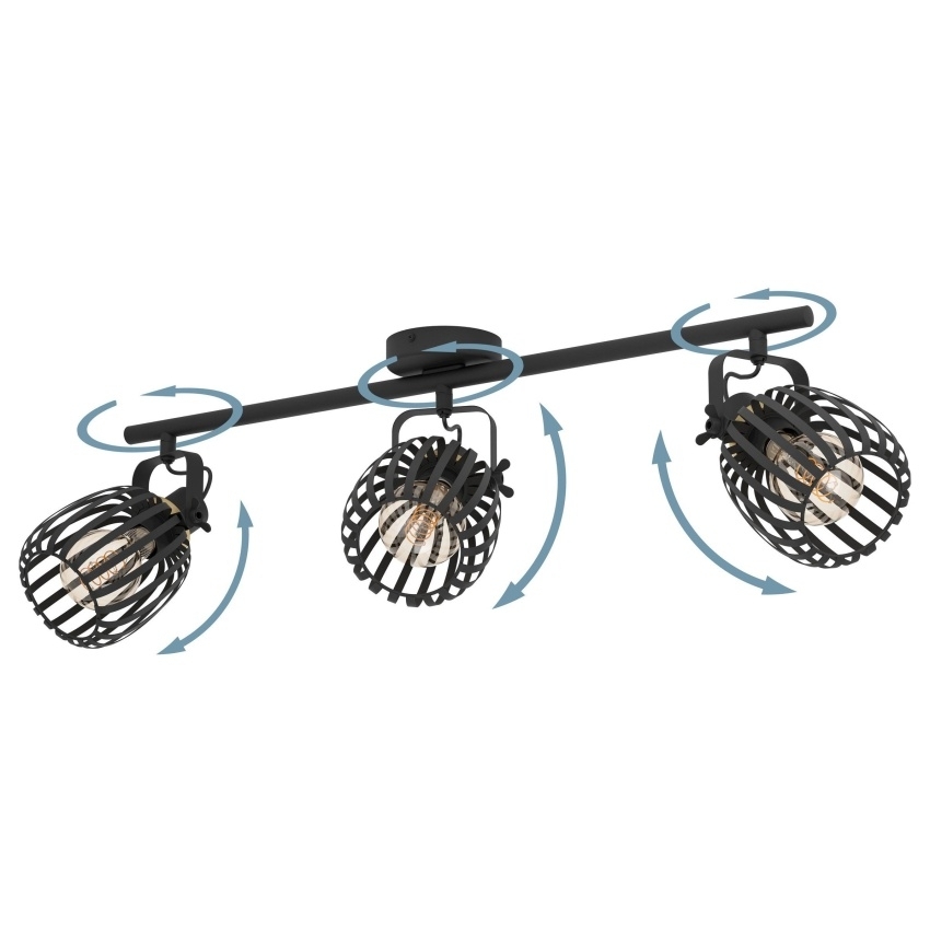 Stropní svítidlo EGLO GIRONA 900663 je vyrobeno z kvalitního černého kovu doplněného elegantními kroužky z kartáčované mosazi. Díky třem pohyblivým stínidlům lze světlo směrovat podle potřeby, což zajišťuje optimální osvětlení prostoru. Moderní design svítidla dodá každému interiéru stylový nádech a hodí se do ložnice, obývacího pokoje, chodby i kuchyně. Žárovky nejsou součástí balení.