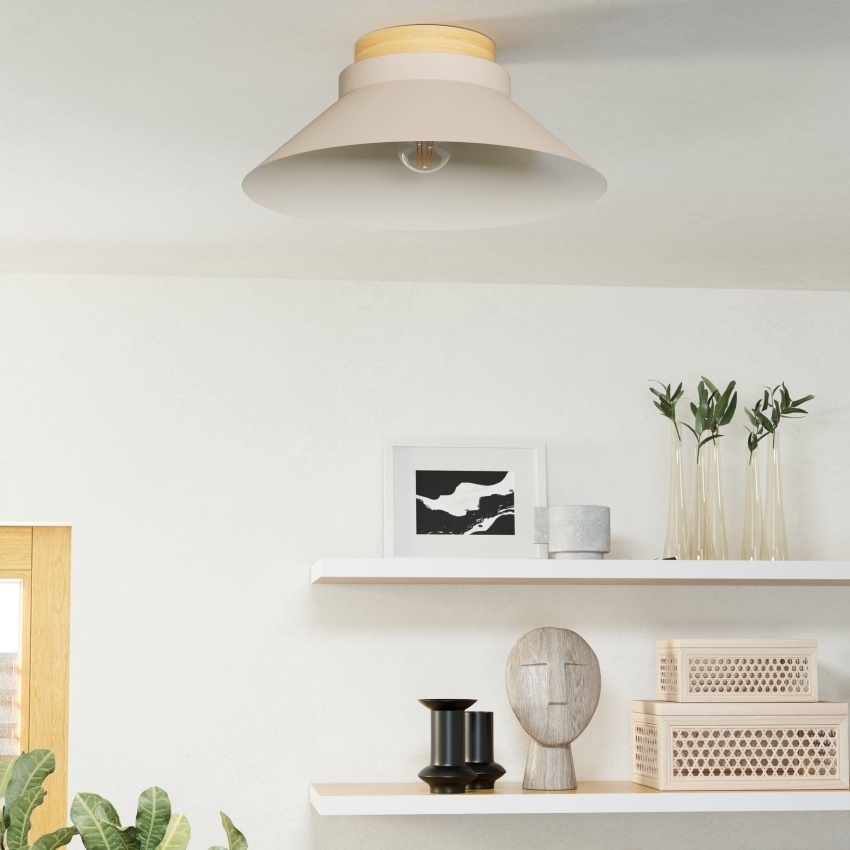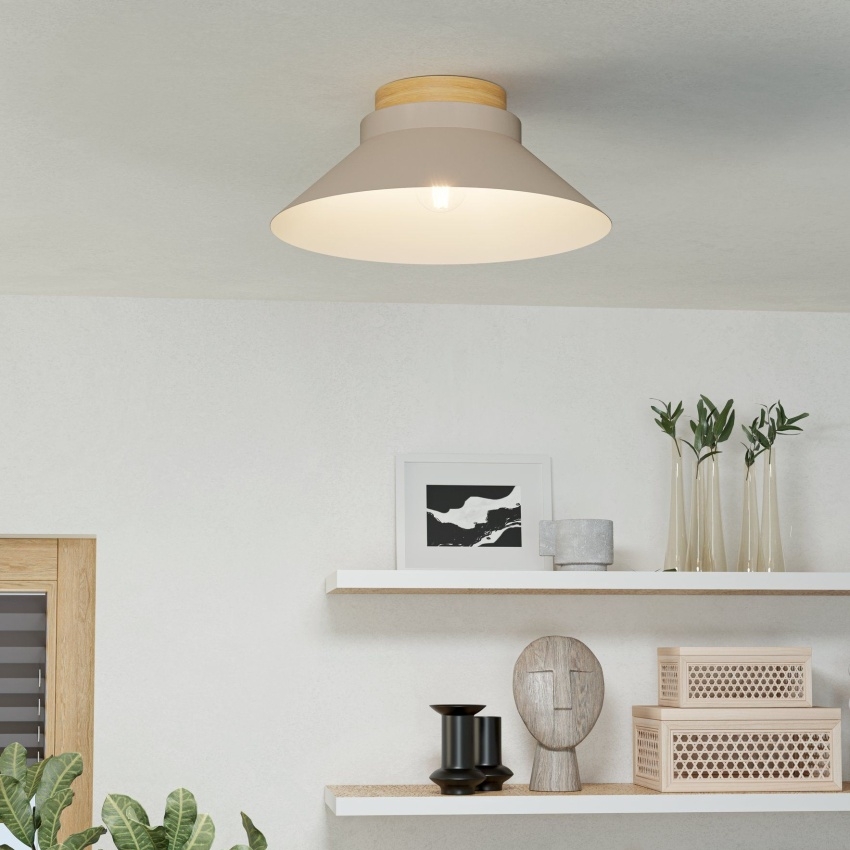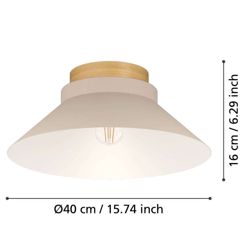 Stropní svítidlo EGLO MOHARRAS spojuje přírodní vzhled dřeva s jemným kovovým prvkem, čímž vytváří harmonické a útulné osvětlení. Trychtýřové stínidlo v pískové barvě je doplněno dřevěným přístřeškem v hnědém provedení, což dává svítidlu stylový vzhled, ideální pro interiéry ve stylu Scandi a Boho. Svítidlo se hodí do kuchyně, obývacího pokoje, ložnice či chodby a krásně zapadne do různých typů moderního zařízení. Žárovka není součástí balení, díky čemuž si můžete zvolit světelný zdroj dle vlastních potřeb.