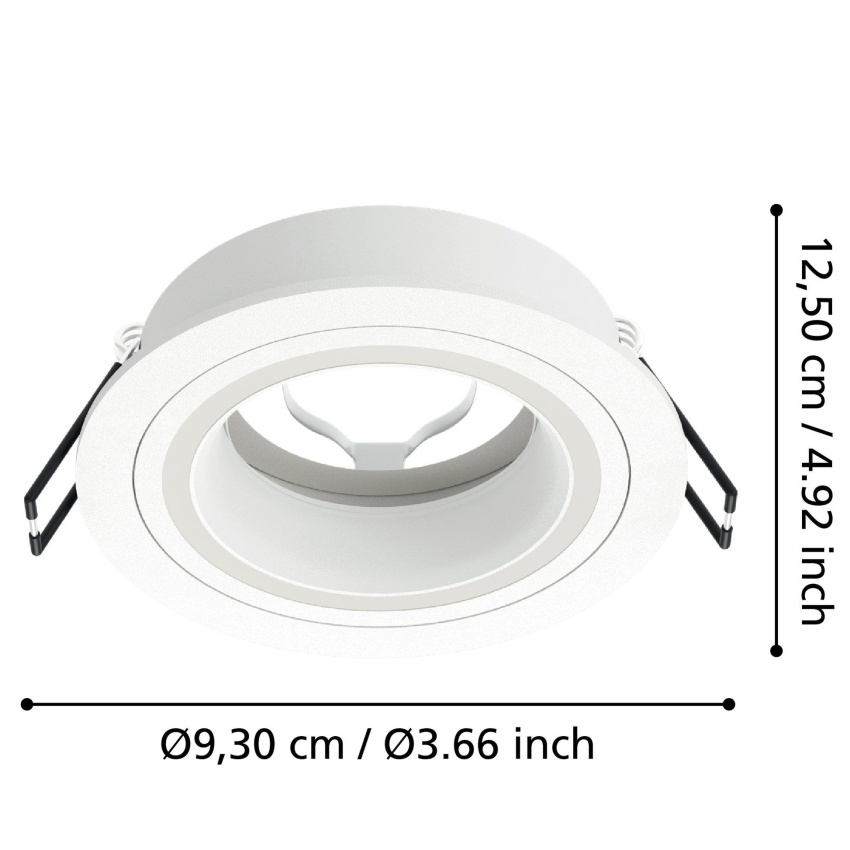 Vestavné svítidlo EGLO CAROSSO je skvělou volbou pro moderní a elegantní osvětlení interiéru. Je vyrobeno z kvalitního hliníku v bílé barvě a doplněno bílým plastovým kroužkem, což mu dodává nadčasový a univerzální vzhled. Díky svému designu se hodí do různých místností, jako je kuchyně, obývací pokoj, ložnice nebo předsíň. Pro instalaci je nutný stropní výřez o průměru 80 mm, přičemž montážní hloubka závisí na použitém světelném zdroji. Žárovka s paticí GU10 není součástí balení.