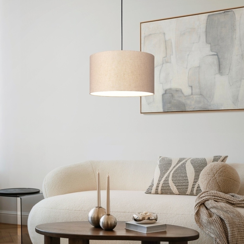Závěsné svítidlo EGLO FENIGLIA 900859 spojuje přírodní design s moderní elegancí. Kulaté stínidlo je vyrobeno z kvalitního lněného materiálu v béžové barvě a doplněno černým závěsem, který vytváří stylový kontrast. Díky svému decentnímu vzhledu se svítidlo hodí do obývacího pokoje, jídelny či jiných obytných prostor, kde poskytne útulné a příjemné osvětlení. Žárovka není součástí balení, použít lze jakoukoliv s paticí E27.