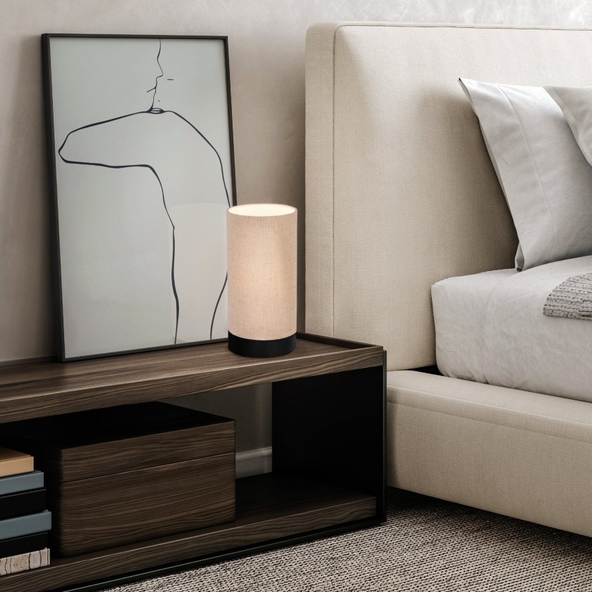 Stolní svítidlo EGLO FENIGLIA 900861 je elegantním doplňkem pro moderní i přírodně laděné interiéry. Válcové stínidlo z lněného materiálu v béžové barvě je doplněno černým kovovým podstavcem, který dodává svítidlu stylový kontrast. Lampa se pohodlně ovládá pomocí vypínače umístěného na kabelu. Skvěle se hodí na noční stolek v ložnici, na příborník nebo do obývacího pokoje, kde vytvoří útulnou atmosféru. Žárovka není součástí balení, použít lze jakoukoliv s paticí E27.