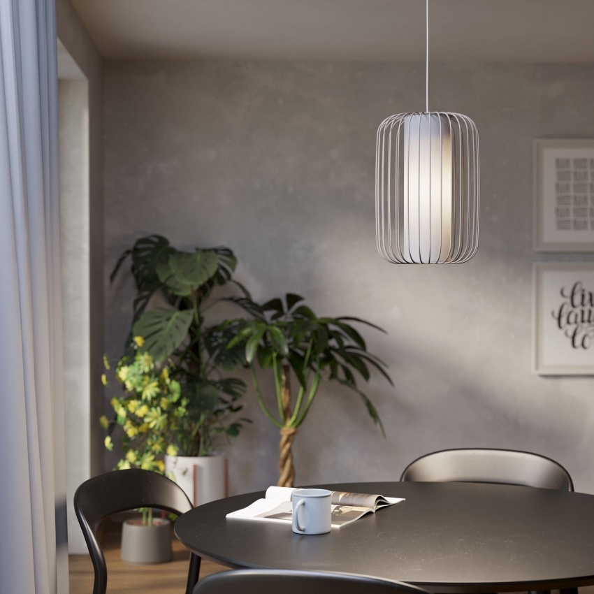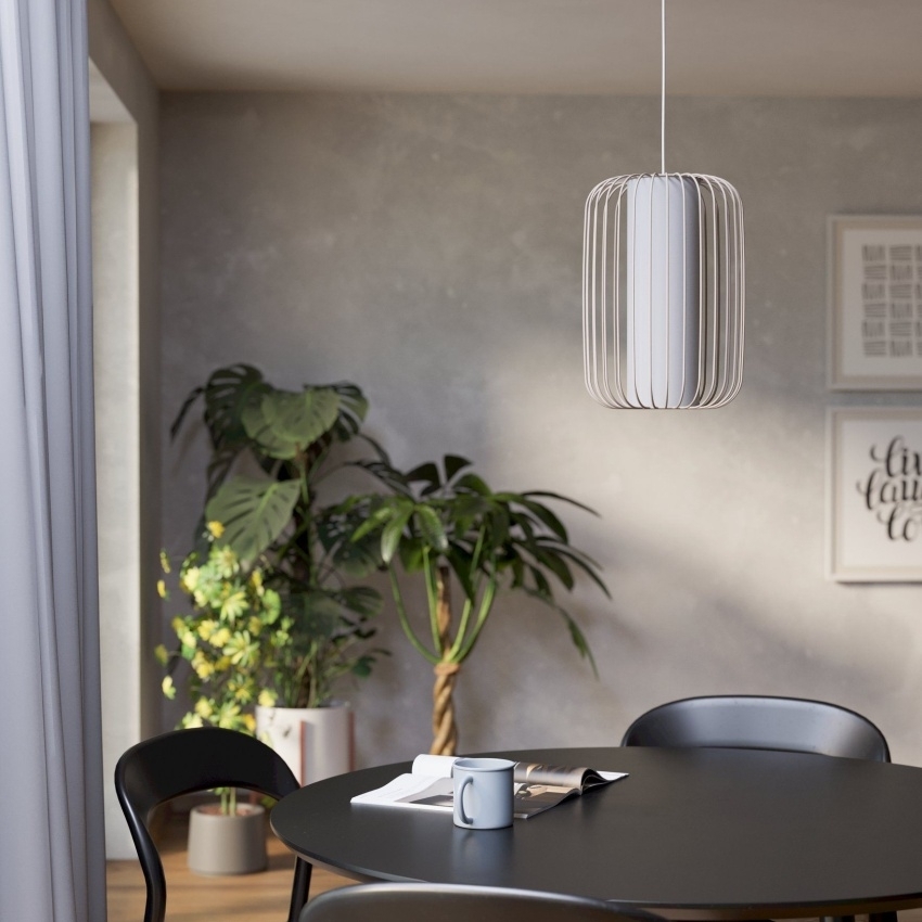 Závěsné svítidlo EGLO TERRAROSA 900866 přináší do interiéru moderní design s přírodním nádechem. Vnější stínidlo tvoří zaoblená kovová konstrukce v pískové barvě, uvnitř se nachází bílý textilní váleček, který zajišťuje příjemné a rovnoměrné osvětlení. Po rozsvícení vytváří svítidlo působivé hry světla a stínu, které dodají místnosti jedinečnou atmosféru. Skvěle se hodí do obývacího pokoje či jídelny nad jídelní stůl. Žárovka není součástí balení, použít lze jakoukoliv s paticí E27.