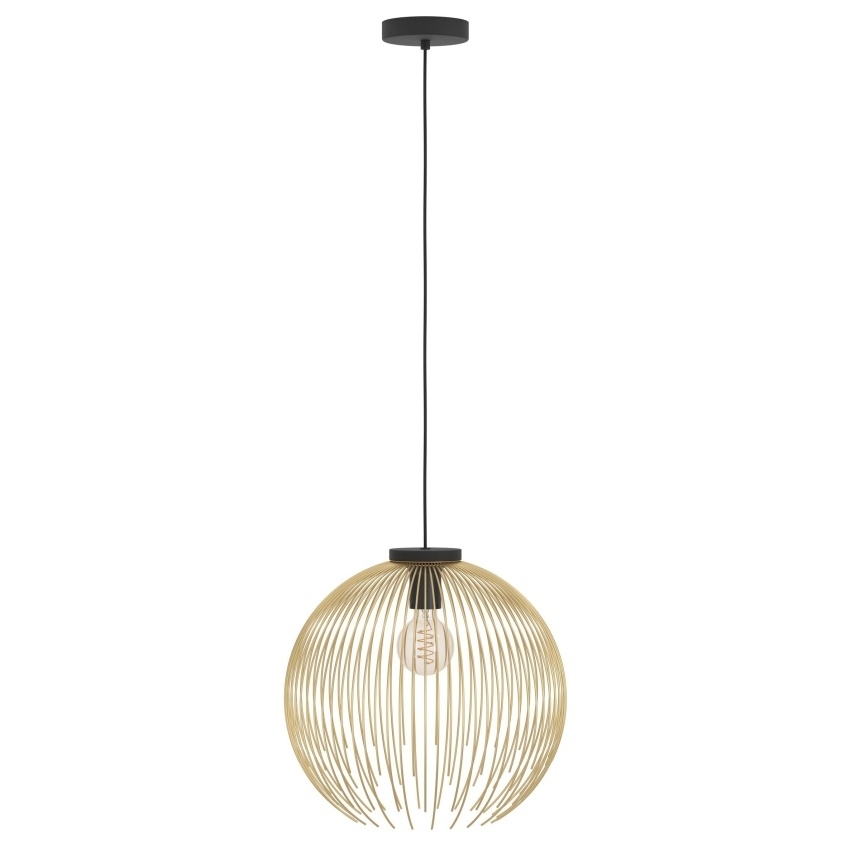 Designové závěsné svítidlo EGLO Venezuela 901003 přináší do interiéru moderní a elegantní vzhled. Kombinace černé a zlaté barvy působí luxusně a zároveň nadčasově, díky čemuž se svítidlo hodí do obývacích pokojů, jídelen i reprezentativních prostor. Průměr 400 mm a výška až 1100 mm zajišťují dostatečnou velikost, aby svítidlo působilo jako výrazný prvek v místnosti. Tři objímky E27 umožňují použití více zdrojů světla, což poskytuje příjemné a rovnoměrné osvětlení. Svítidlo je určeno pouze pro interiéry s krytím IP20.