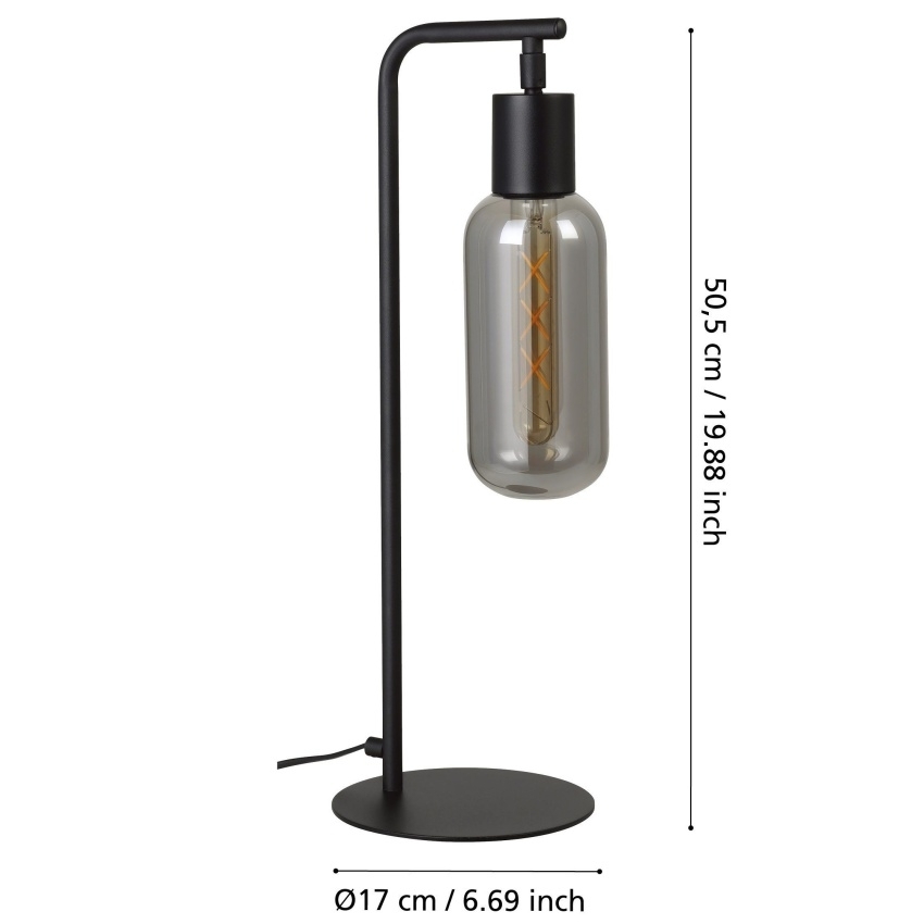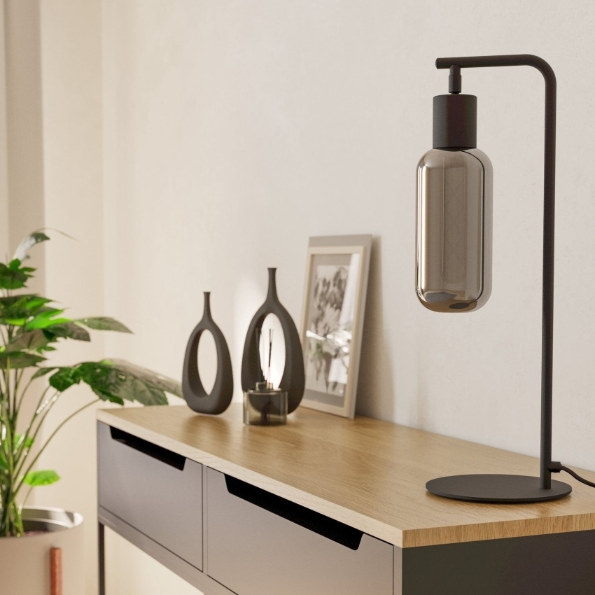 Stolní svítidlo EGLO Maione 901007, černé, 1×E27, kouřové sklo, IP20