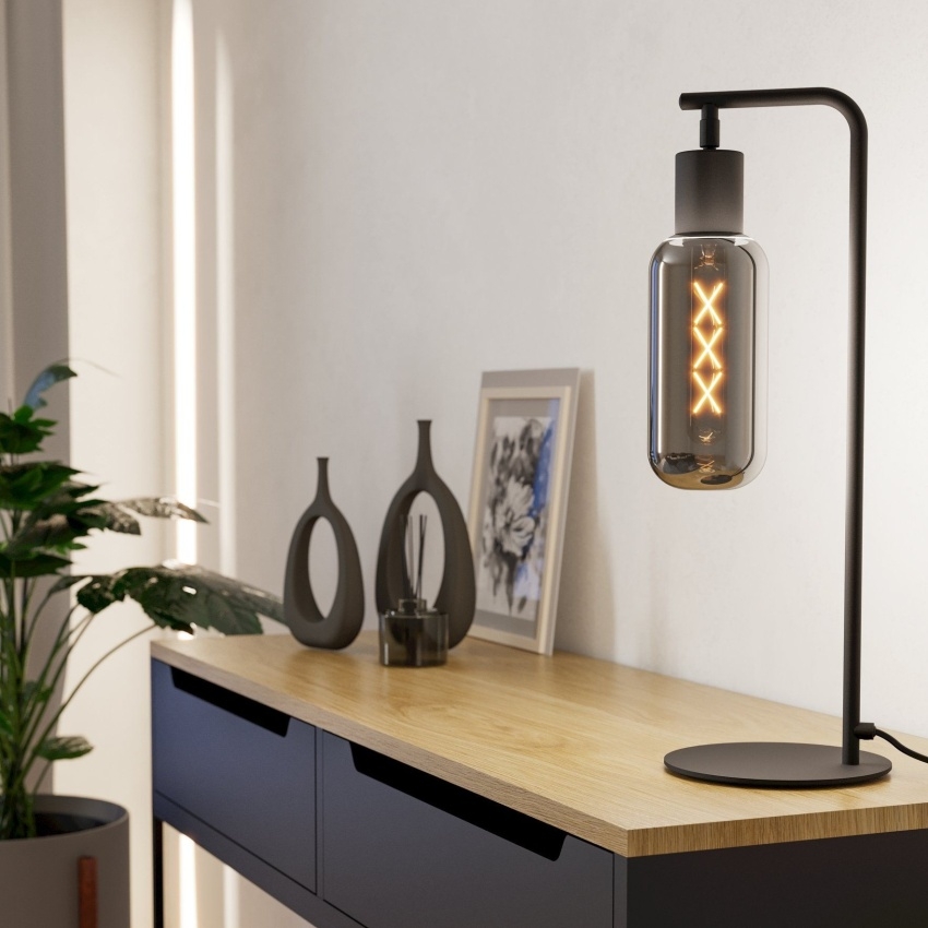 Elegantní stolní svítidlo EGLO Maione 901007 spojuje moderní design s praktickým využitím. Černé ocelové tělo je doplněno stínidlem z kouřového šedého skla, které dodává světlu příjemnou atmosféru a zároveň působí stylově. Díky kompaktním rozměrům 170 × 90 × 505 mm je svítidlo vhodné na pracovní stůl, noční stolek nebo do obývacího pokoje jako dekorativní prvek. Patice E27 umožňuje využití úsporných LED žárovek až do výkonu 4 W, což přináší efektivní a útulné osvětlení. Svítidlo je určeno pro interiérové použití s krytím IP20.