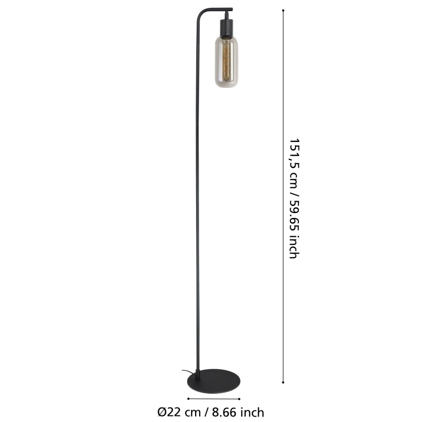 Stojací svítidlo EGLO Maione 901008, černé, 1×E27, kouřové sklo, IP20