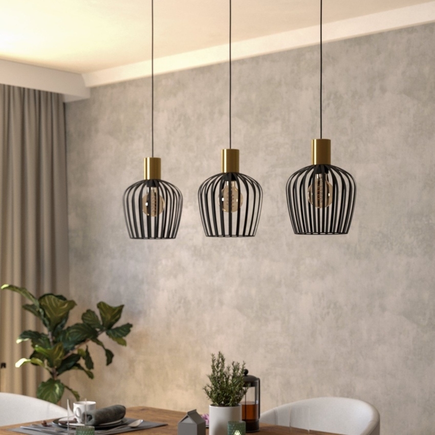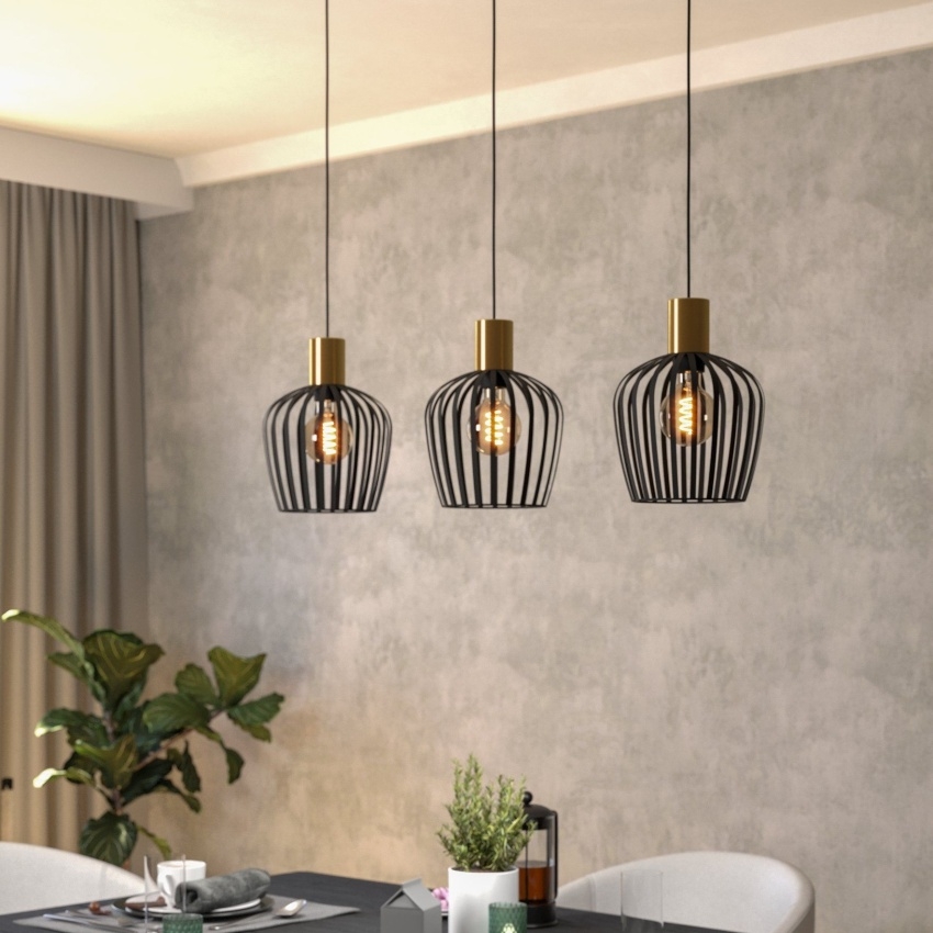 Závěsné svítidlo EGLO Empoli 901037, černé/kartáčovaná mosaz, 3×E27, IP20