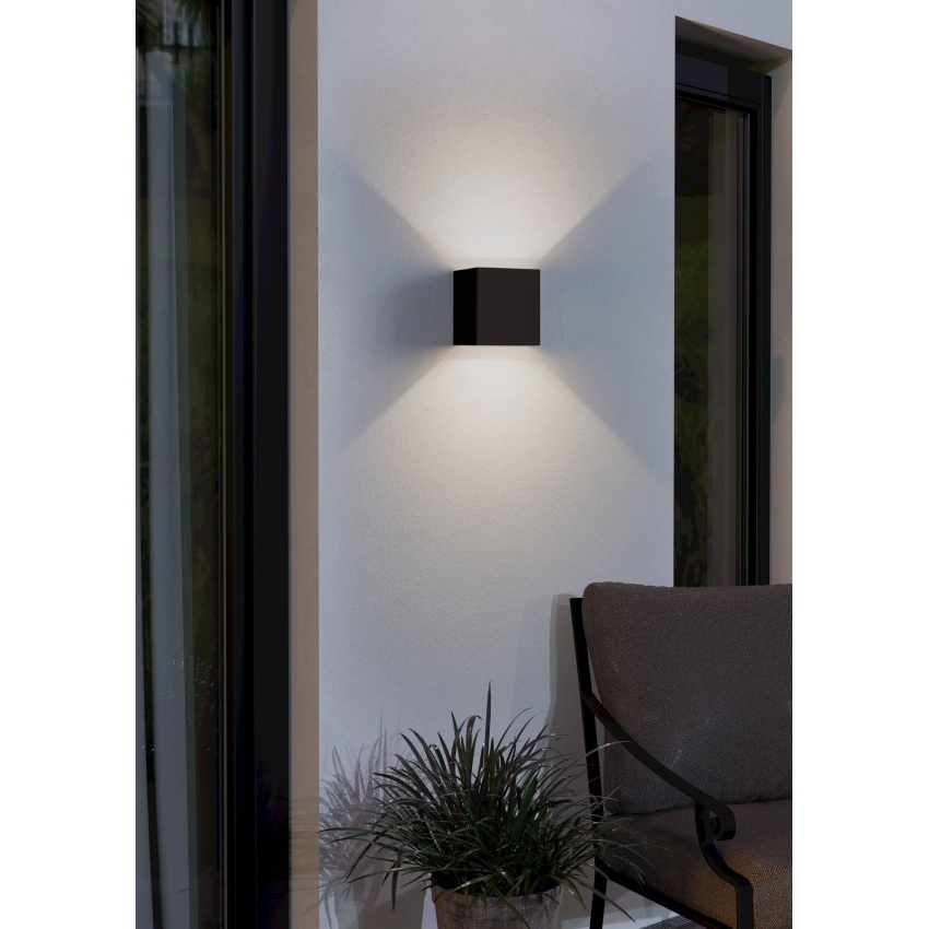Díky robustní konstrukci z hliníkové slitiny v černém provedení a čirému sklu je ideální pro použití na fasádách domů, terasách nebo v zahradách. Svítidlo je vybaveno dvěma integrovanými LED světelnými zdroji o výkonu 2×2,8 W, které poskytují celkový světelný tok 840 lm s příjemnou teplou bílou barvou světla (3000 K). Vysoká odolnost vůči prachu a vodě (IP54) zajišťuje dlouhou životnost a spolehlivý provoz i v náročných venkovních podmínkách.