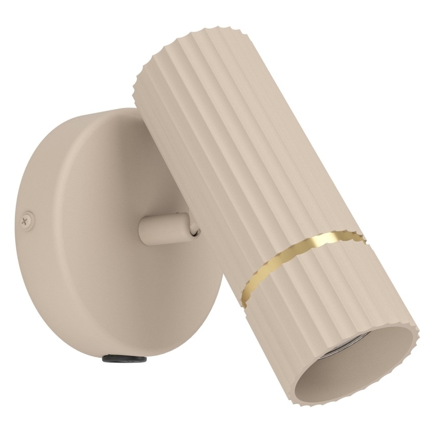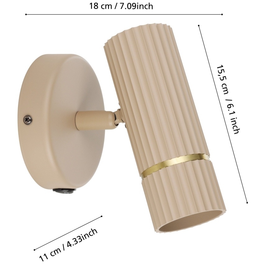 Stylové nástěnné svítidlo EGLO Caminia 901153 se vyznačuje minimalistickým designem a elegantní kombinací pískové barvy s prvky kartáčované mosazi. Díky kompaktním rozměrům (výška 155 mm, délka 110 mm, rozpětí 140 mm) je ideální jako doplňkové nebo akcentní osvětlení do obývacího pokoje, ložnice či chodby. Svítidlo je vybaveno paticí GU10 a součástí balení je LED světelný zdroj s výkonem 5 W. Určeno je pro interiérové použití s krytím IP20.