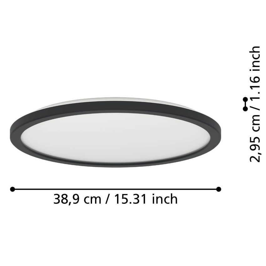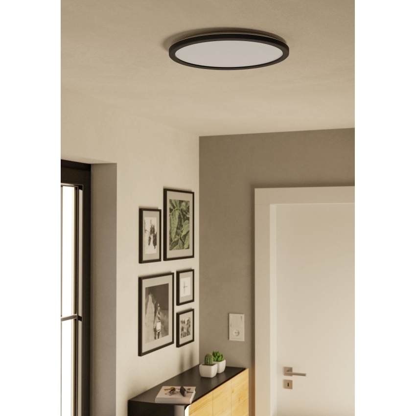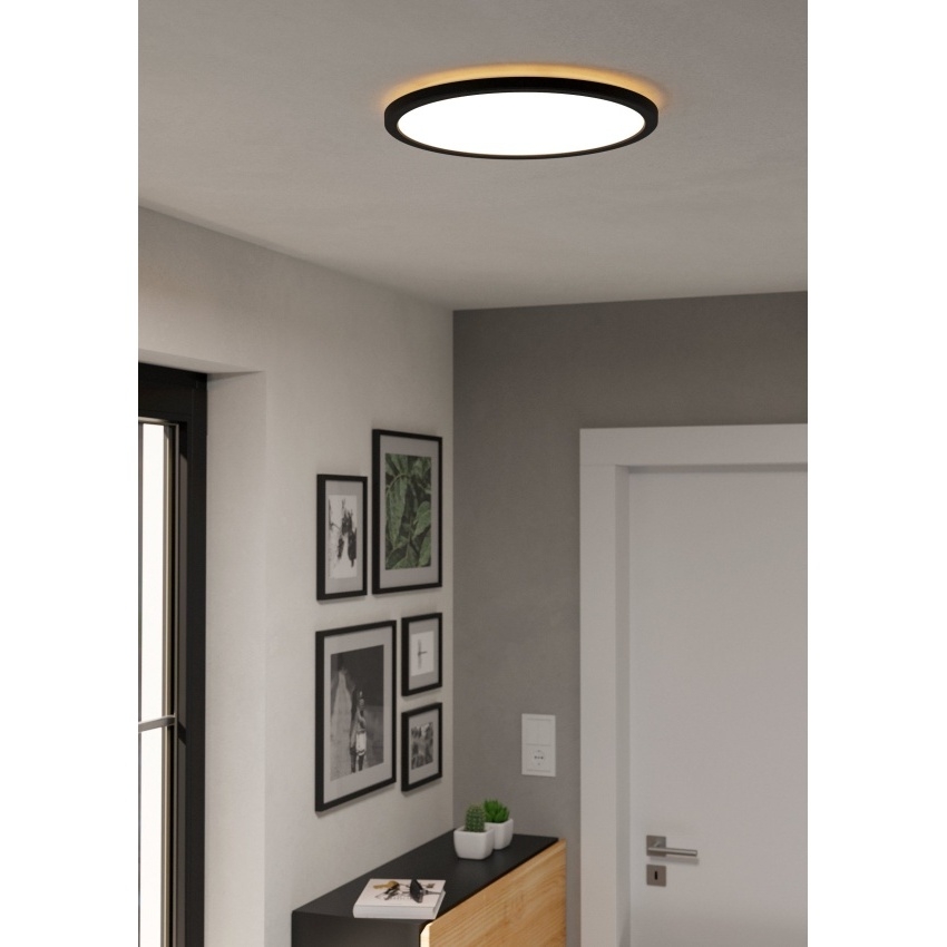 Stropní svítidlo ROVITO EGLO 901439 je elegantní a výkonné LED svítidlo určené pro použití ve vnitřních prostorech. Díky modernímu designu s tenkým profilem (výška pouze 30 mm), plastovému černému tělu a bílému stínidlu se hodí do obývacích pokojů, chodeb, koupelen i dalších prostor. Svítidlo nabízí možnost nastavení teploty světla (2700 K, 4000 K, 6500 K) pomocí funkce CCT, což umožňuje přizpůsobení světelné atmosféry. Integrovaný LED světelný zdroj o výkonu 18,5 W poskytuje vysoký světelný tok 2300 lm. Svítidlo je chráněno proti stříkající vodě (IP44), což umožňuje použití i ve vlhkých místnostech.