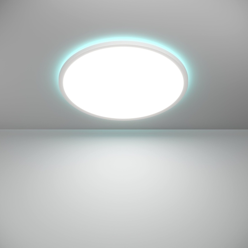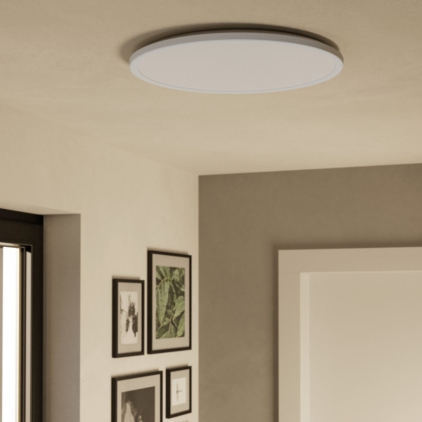 Chytré stropní LED svítidlo EGLO Rovito-Z 901473 z řady Connect-Z smart home spojuje moderní funkce s minimalistickým vzhledem. Díky výšce pouhých 30 mm a průměru 500 mm se hodí do každého moderního interiéru, kde poskytuje výkonné i variabilní osvětlení. Integrované LED diody umožňují nastavení teplého, neutrálního či studeného bílého světla a také barev RGB. Přímé a nepřímé osvětlení lze samostatně zapínat, vypínat i stmívat. Ovládání je možné přes aplikaci AwoX Home Control, hlasové asistenty (Amazon Alexa, Google Assistant), Bluetooth, ZigBee 3.0 nebo volitelný dálkový ovladač. Díky krytí IP44 je svítidlo vhodné i do vlhčích prostor, například koupelen.