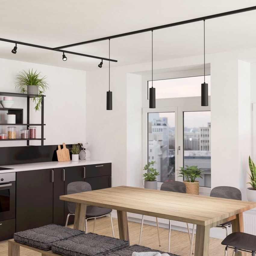 Závěsné svítidlo EGLO Easyt Pendant 901651 je určeno pro použití v lištovém systému EASYT, což umožňuje jeho flexibilní a praktické využití v moderních interiérech. Díky černému plastovému provedení působí minimalisticky a elegantně, hodí se jak do obytných, tak do komerčních prostor. Patice GU10 umožňuje použití LED zdrojů až do výkonu 10 W, takže si můžete vybrat světelný zdroj podle svých potřeb. S výškou 1100 mm a průměrem 60 mm se stává decentním, ale účinným prvkem osvětlení.