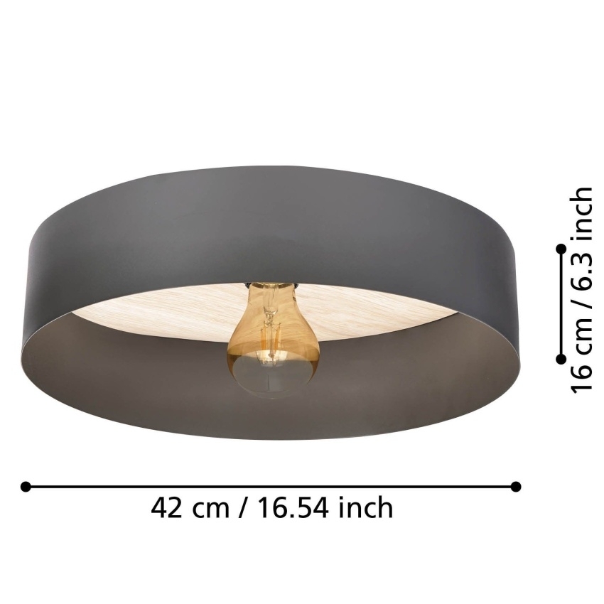Stropní svítidlo EGLO Duaia 901745 přináší do interiéru teplý přírodní vzhled v kombinaci s elegantním kovovým prvkem. Ocelová konstrukce v šedohnědém provedení je doplněna dřevěným stínidlem v hnědé barvě a detaily v kartáčované mosazi. Díky průměru 420 mm a výšce 160 mm se hodí do obývacího pokoje, ložnice i jídelny, kde vytvoří příjemnou atmosféru. Svítidlo je vybaveno paticí E27 pro světelný zdroj do 40 W, který není součástí balení. Určeno pro vnitřní použití se stupněm krytí IP20.