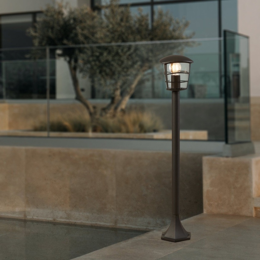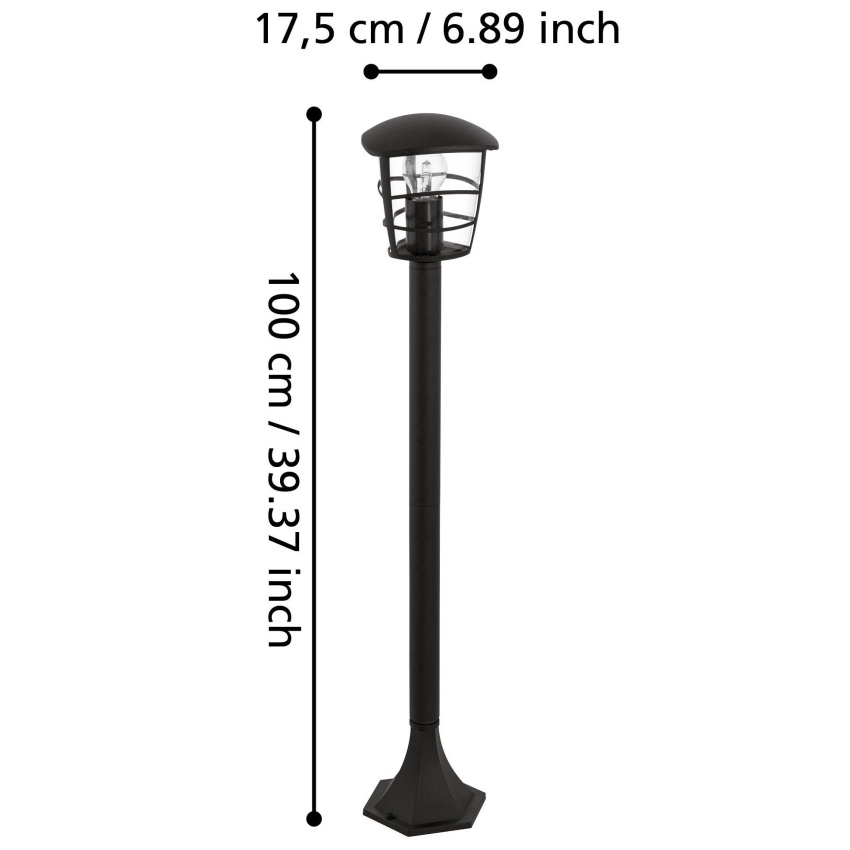 Venkovní stojací svítidlo EGLO Aloria 93408 v designu moderní lucerny je elegantním doplňkem každého exteriéru. Černé tělo z litého hliníku je doplněno čirými plastovými panely, které umožňují přímý pohled na světelný zdroj a zajišťují jasné a rovnoměrné osvětlení. Díky krytí IP44 je svítidlo chráněno proti stříkající vodě, což zajišťuje bezpečné použití v zahradách, na terasách či příjezdových cestách. Svítidlo je kompatibilní se všemi žárovkami s paticí E27, takže si můžete snadno zvolit intenzitu i barvu světla podle vlastních preferencí.