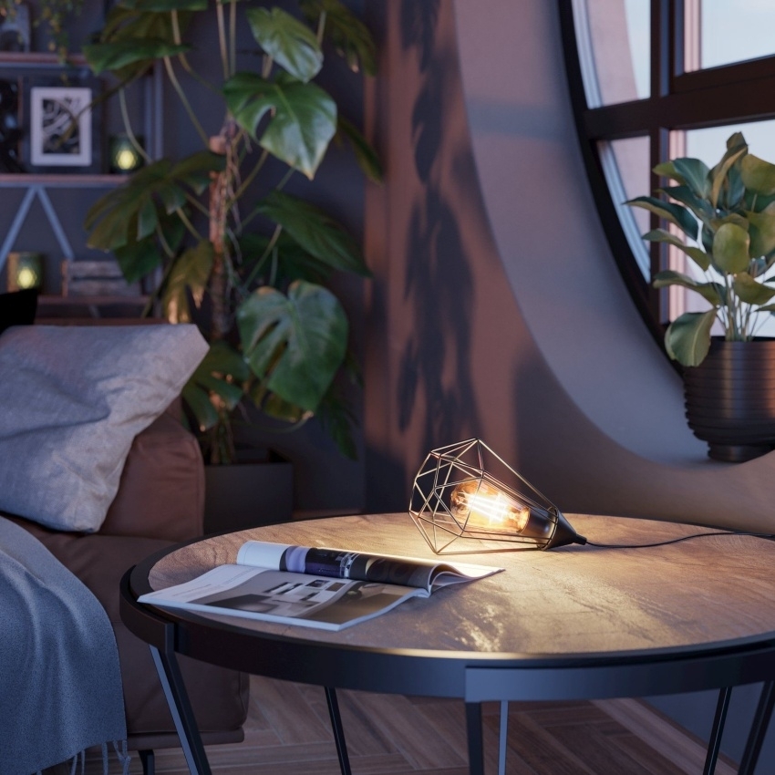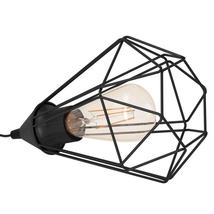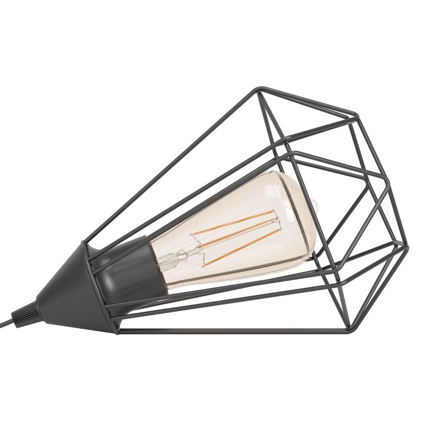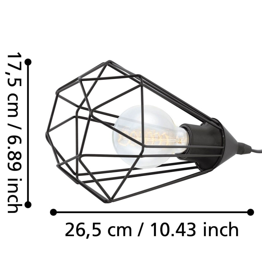 Industriální stolní lampa EGLO Tarbes 94192 zaujme originálním drátěným stínidlem z černě lakované oceli v kosočtvercovém tvaru. Geometrický design vytváří při rozsvícení jedinečné světelné efekty a hru stínů, která dodá místnosti osobitou atmosféru. Díky univerzálnímu provedení se hodí na noční stolek, do obývacího pokoje, předsíně či jídelny. Svítidlo je vhodné pro žárovky s paticí E27, které lze zvolit podle požadované intenzity a barvy světla. Žárovka není součástí balení.