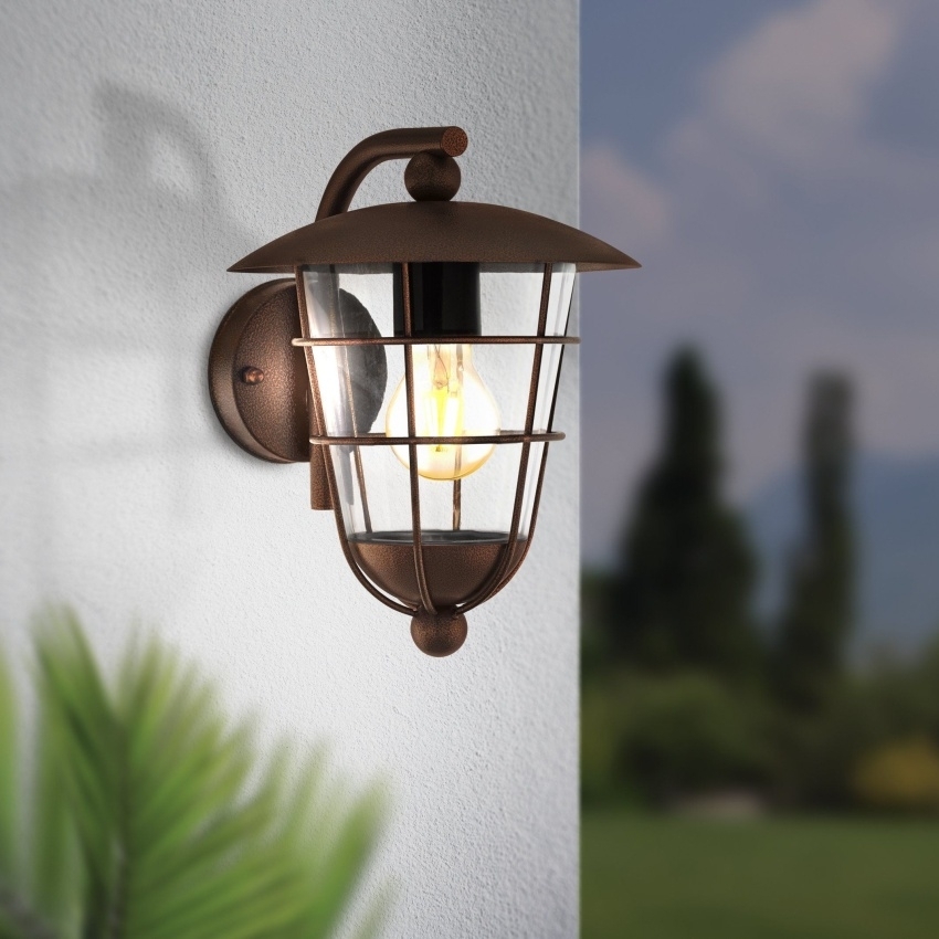 Venkovní nástěnné svítidlo EGLO PULFERO 1 94855 v antické hnědé barvě s paticí E27 a krytím IP44.