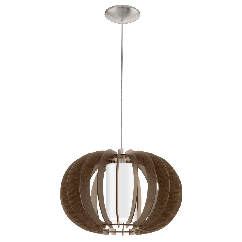 Závěsné svítidlo STELLATO 3 má kulaté stínidlo s hnědými dřevěnými segmenty a matný niklový vrchlík. Vnitřní bílý skleněný válec doplňuje moderní vzhled svítidla a poskytuje atraktivní osvětlení. Závěsné svítidlo s průměrem 40 cm hladce zapadne do jakéhokoli stylu interiéru a poskytne příjemné osvětlení v obývacím pokoji nebo nad stolem v jídelně. Žárovka není součástí dodávky. Výrobek má objímku žárovky E27 a vyžaduje žárovku E27.