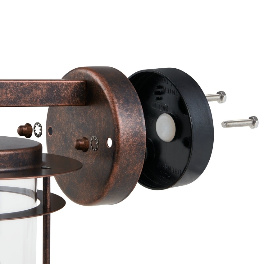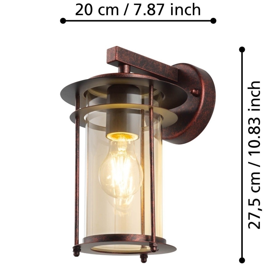 Venkovní nástěnné svítidlo EGLO VALDEO 96241 v elegantní antické měděné barvě je stylovým doplňkem pro váš exteriér. Je vyrobeno z odolného pozinkovaného kovu a doplněno čirým skleněným válcem, který umožňuje plné rozvinutí světelného efektu. Díky stupni krytí IP44 je svítidlo chráněno proti stříkající vodě, a proto je vhodné pro bezpečné venkovní použití. Lampa je kompatibilní s žárovkou s paticí E27 do maximálního výkonu 60W (není součástí balení). Tento moderní model skvěle zapadne k osvětlení vstupů, teras, balkonů či zahradních cest.