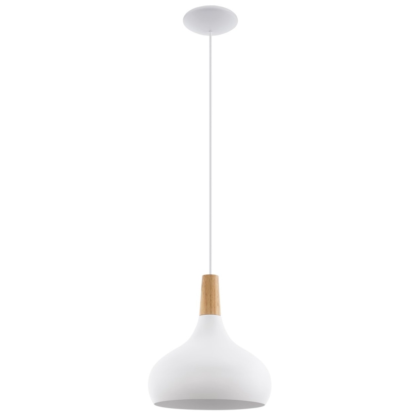 Závěsné svítidlo SABINAR má zakřivené bílé stínidlo zavěšené na bílém kabelu. Stínidlo má hnědý dřevěný prvek, který doplňuje osobité kouzlo světla. Závěsné svítidlo se svým skandinávským designem a průměrem 28 cm poskytuje stylové osvětlení obývacího pokoje nebo jídelny. Žárovka není součástí dodávky. Výrobek má objímku žárovky E27 a vyžaduje žárovku E27.