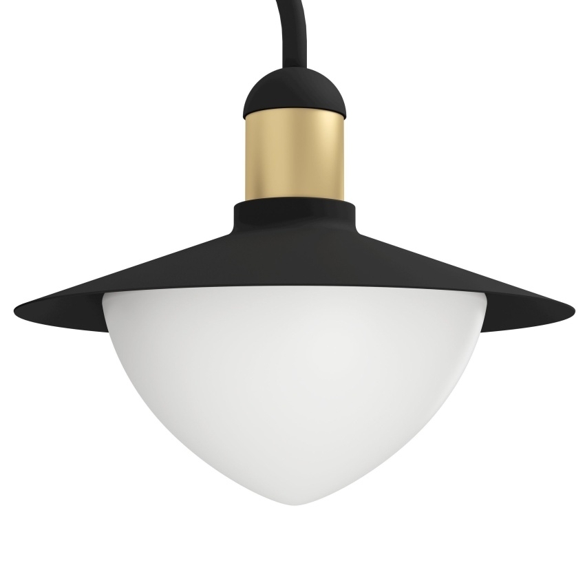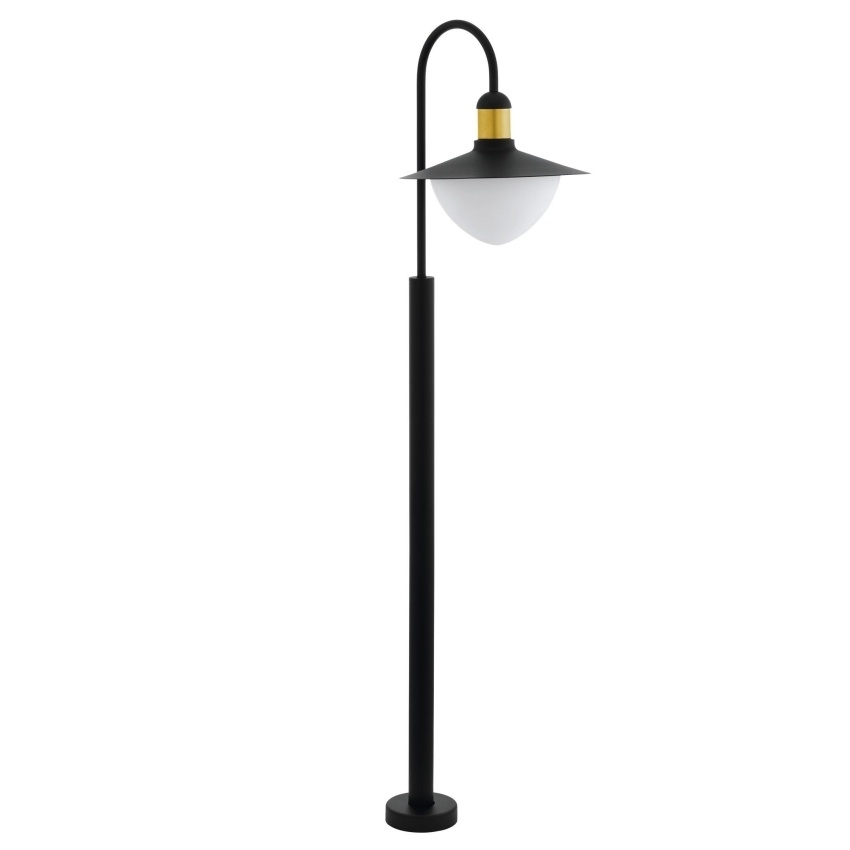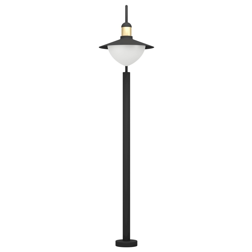 Venkovní stojací svítidlo EGLO SIRMIONE 97287 v černé barvě se zlatým detailem, opálovým skleněným stínidlem a krytím IP44.