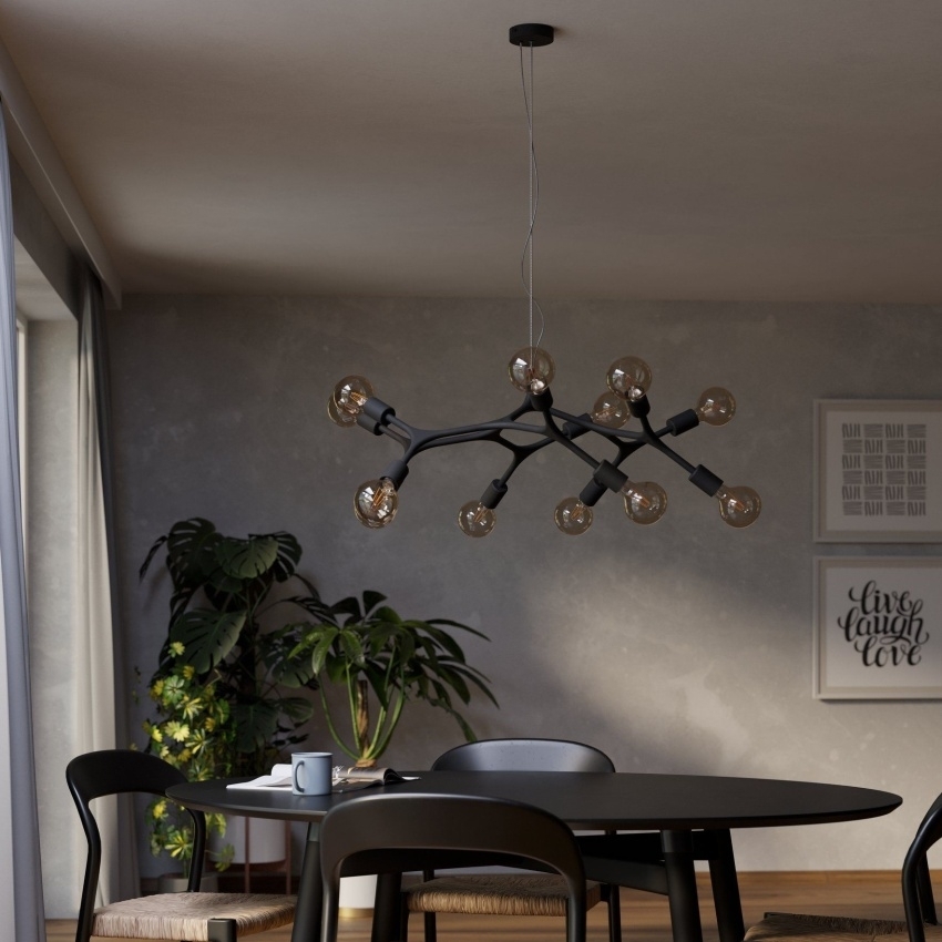 Závěsné svítidlo EGLO BOCADELLA 98347 z černé oceli pro 12 žárovek s paticí E27.